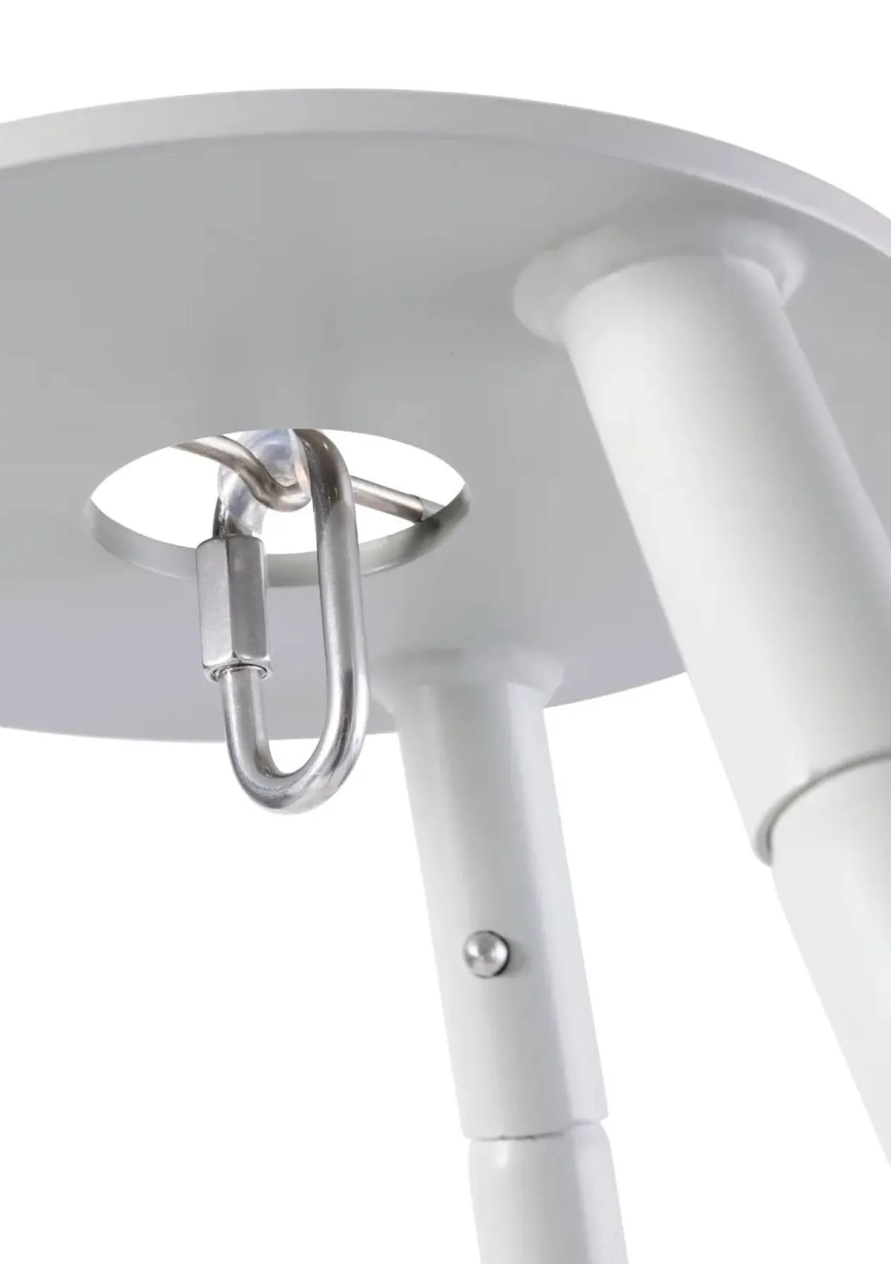 - Wenn Metall auf Metall trifft, können Metallstaub und Metallsplitter entstehen. Achten Sie deshalb darauf, dass der Stoffbeutel oberhalb der Feder befestigt ist und die Feder und den kleinen Karabinerhaken bedeckt.