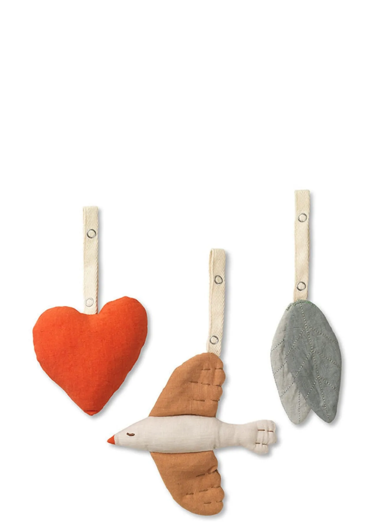 In zauberhafter Aufmachung und mit überraschenden Effekten präsentieren sich diese hübschen Anhänger aus der „Songbird-Kollektion“ von DEAR APRIL. Die Öko-Tex Standard 100 zertifizierten Spiel-Elemente machen nicht nur Rassel- und Knistergeräusche, sondern fühlen sich auch toll an.