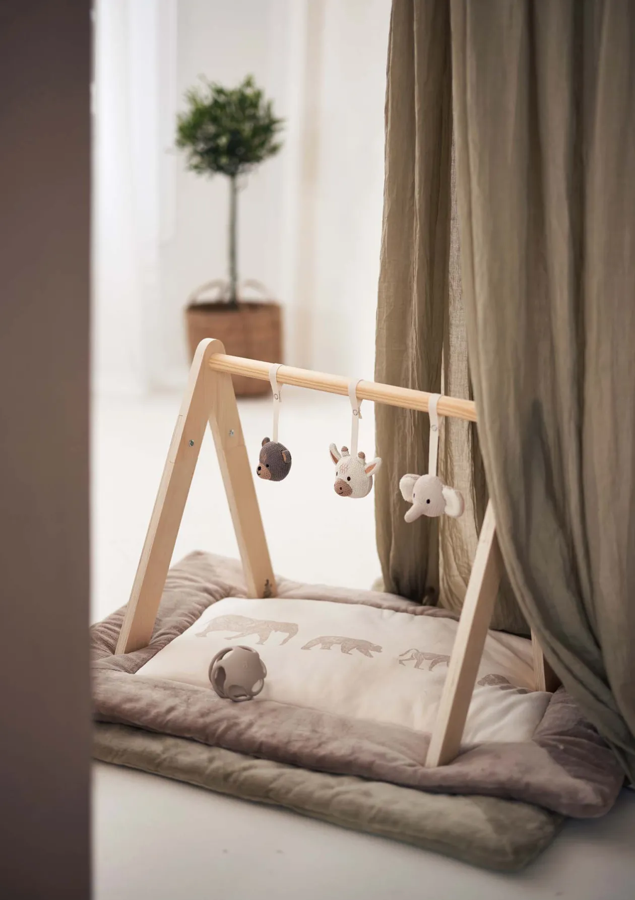 So süß! Die drei Anhänger eignen sich zur Verwendung in Kombination mit dem JOLLEIN Babygym aus Holz. Sie sind aus extra weichem Strick. Ab einem Alter von ca. 10 Wochen hat dein Baby ein zunehmendes Bedürfnis nach Stimulation, Spielen und Herumschauen. Die beste Zeit für einen Spielebogen!