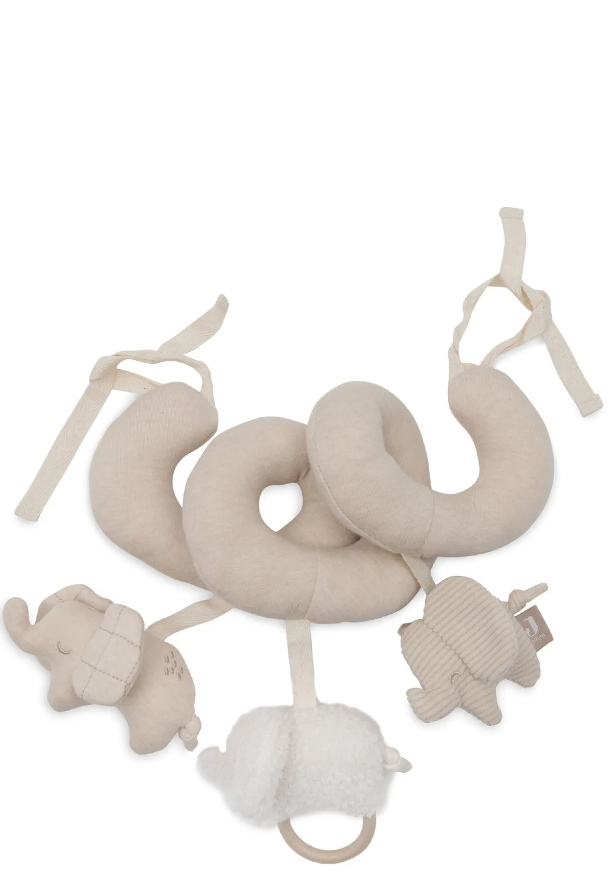 Mit knisternden Elementen, einem Spiegel, verschiedenen Stoffstrukturen und den niedlichen Elefantenfiguren regt die Spirale spielerisch die motorische Entwicklung und die visuelle sowie sensorische Wahrnehmung deines Babys an.