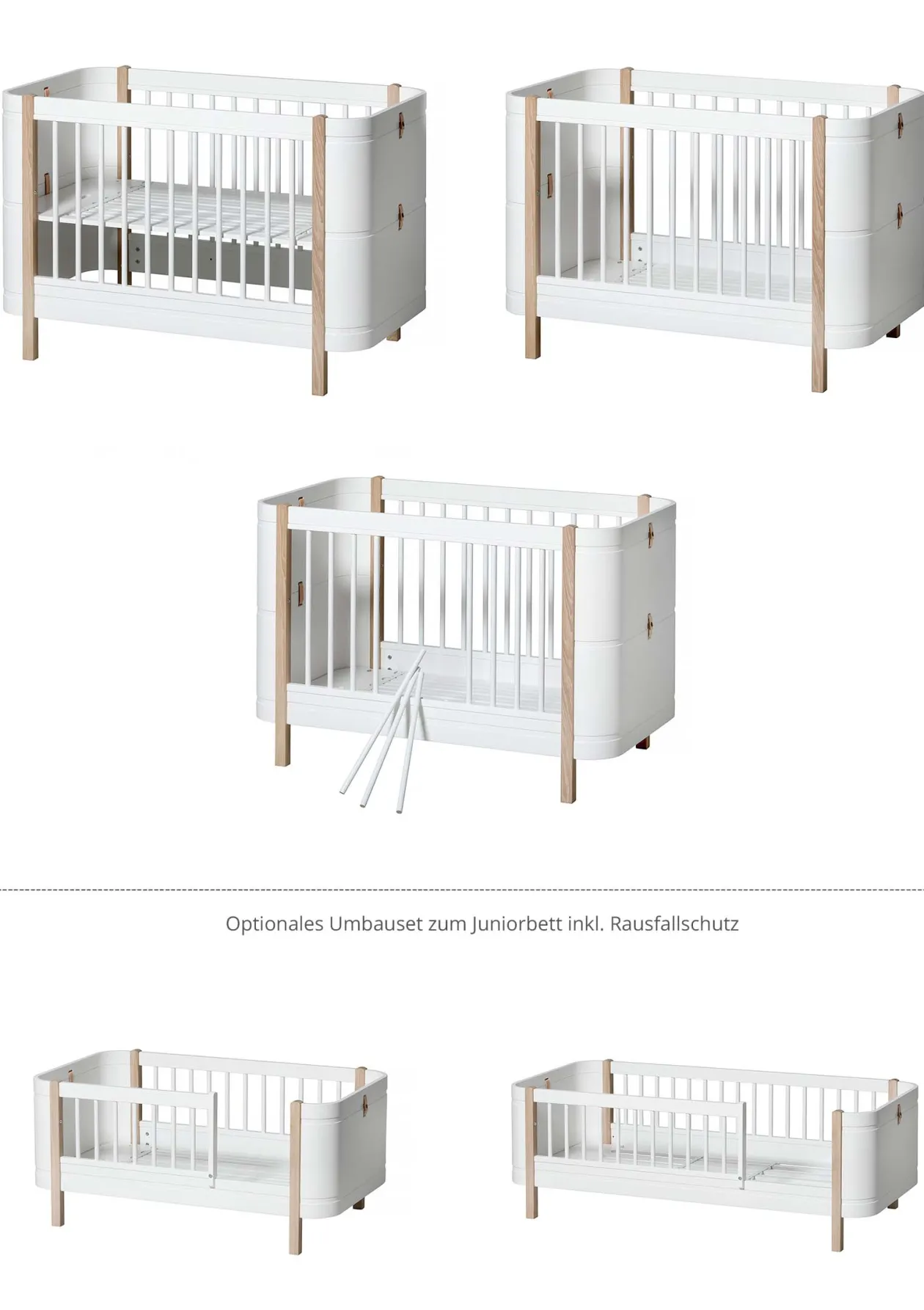 - vom Babybett inkl. Junior-Erweiterung zum Babybett und Juniorbett Weiß / Eiche