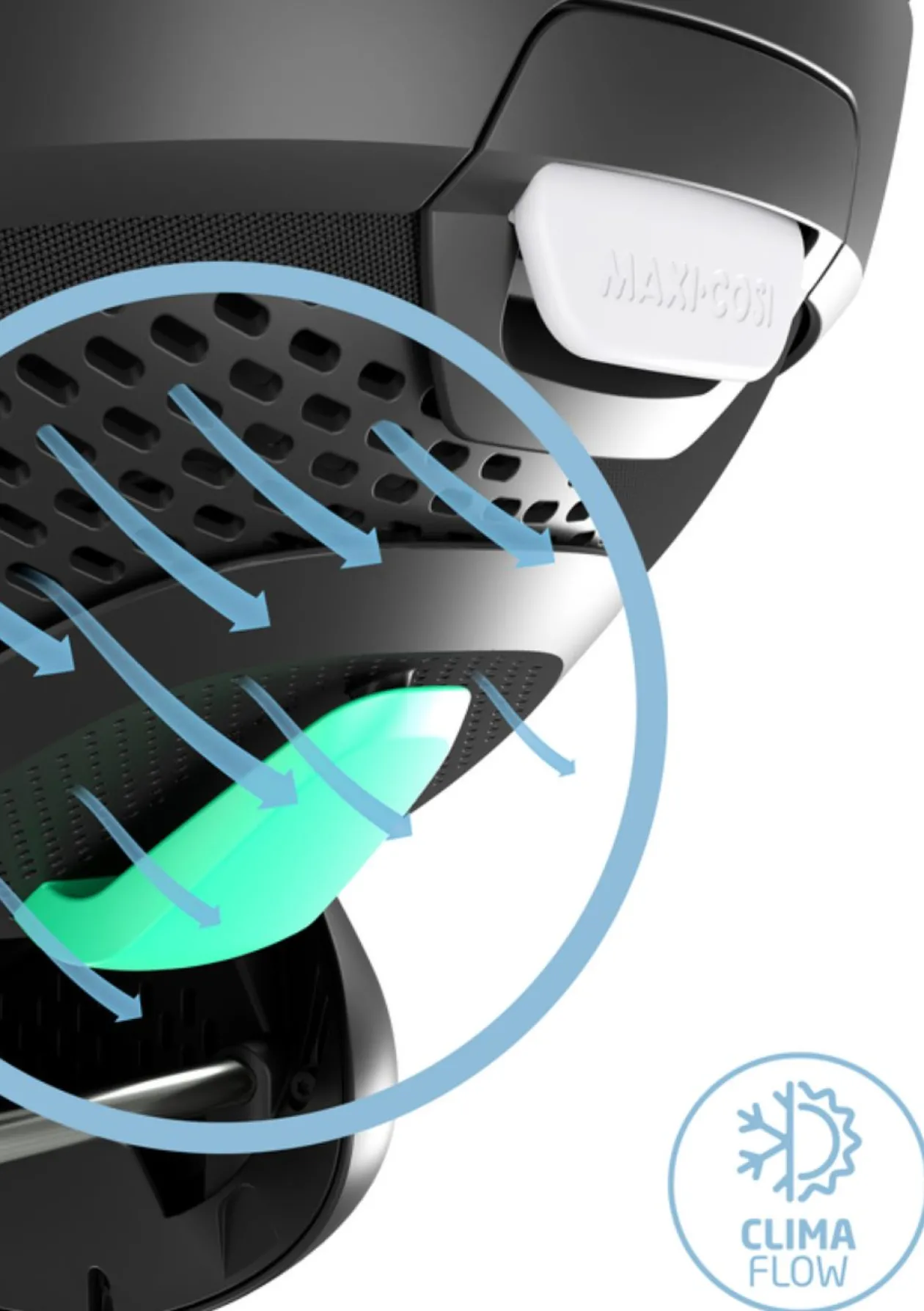 - ClimaFlow-Temperaturregulierung: Clima Flow-Paneele, atmungsaktiver Schaumstoff und klimaregulierende Mesh-Stoffe sorgen für eine angenehme Luftzirkulation und höchstes Wohlbefinden unterwegs