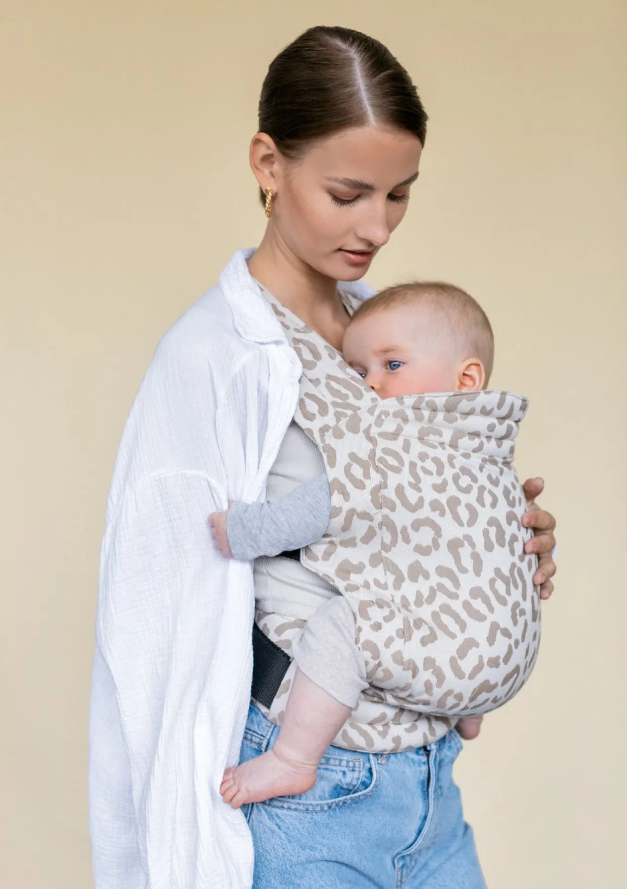 Ein wahrer Hingucker ist dieser hochwertige Premium Babycarrier von SANDIIA mit eindrucksvollem Leo-Dessin. Das leichte und anschmiegsame Modell sorgt für die optimale Gewichtsverteilung deines Kindes und bietet euch höchsten Tragekomfort. Die ergonomische Baby- und Kleinkindtrage ist aus ökologischer Baumwolle gefertigt und lässt sich sehr einfach an- und ausziehen – ohne Hilfestellung Dritter. In den ersten Lebensmonaten genießt dein kleiner Schatz, in dir zugewandter Sitzposition, deine Nähe und Geborgenheit. Sobald dein Baby selbstständig sitzt, kannst du es auch auf dem Rücken tragen. Neben einem praktischen Schutzbeutel ist auch eine abnehmbare Kopfstütze im Set enthalten. Sie bietet deinem Baby zusätzlichen Halt, fungiert aber auch als Sonnenschutz, mitwachsendes Rückenteil und dient in eingerolltem Zustand als Nackenstütze.