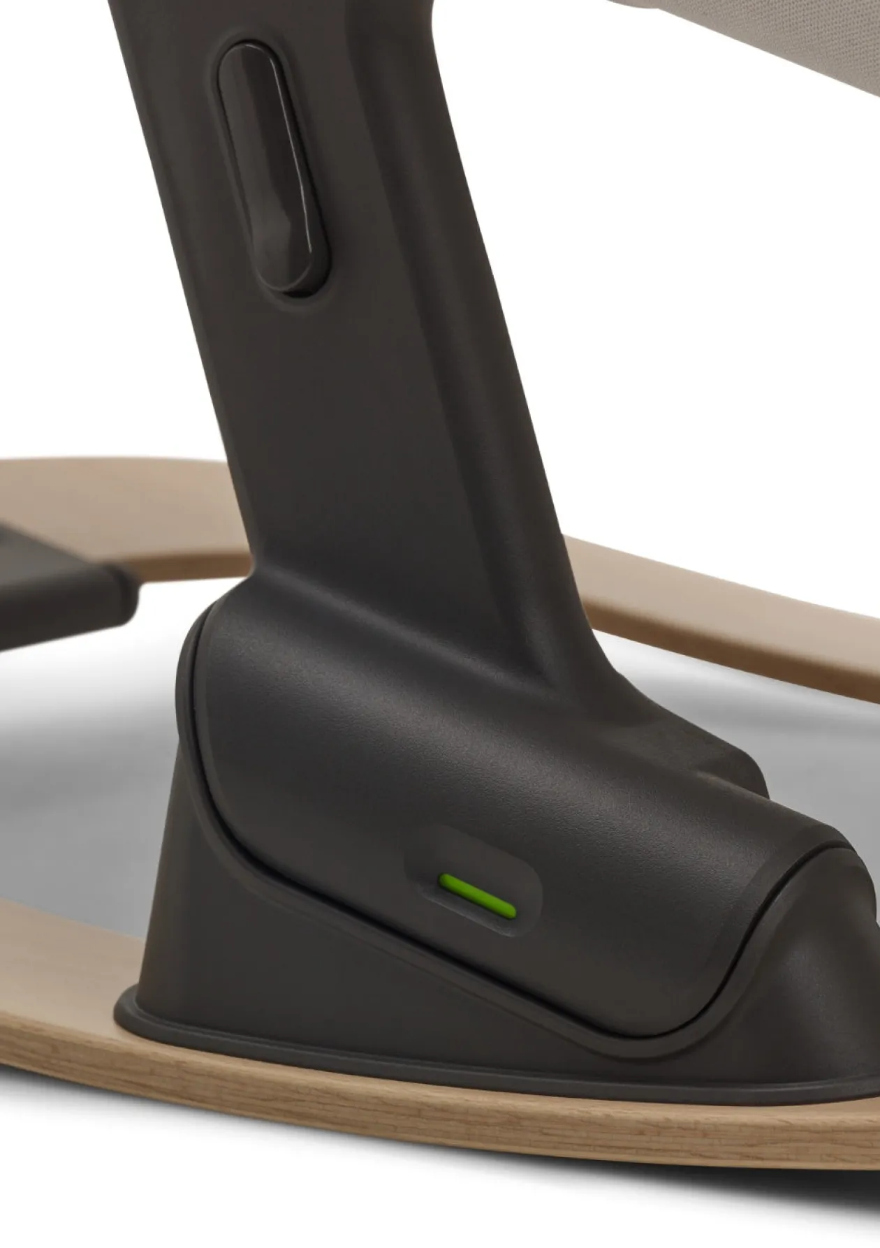Der abnehmbare Sitz lässt sich auf dem gleichnamigen Hochstuhl (separat erhältlich) befestigen – für einen nahtlosen Übergang. Ausgestattet mit maschinenwaschbaren Bezügen und einem pflegeleichten Rahmen, ist diese Wippe nicht nur praktisch, sondern auch langlebig und durchdacht bis ins Detail.