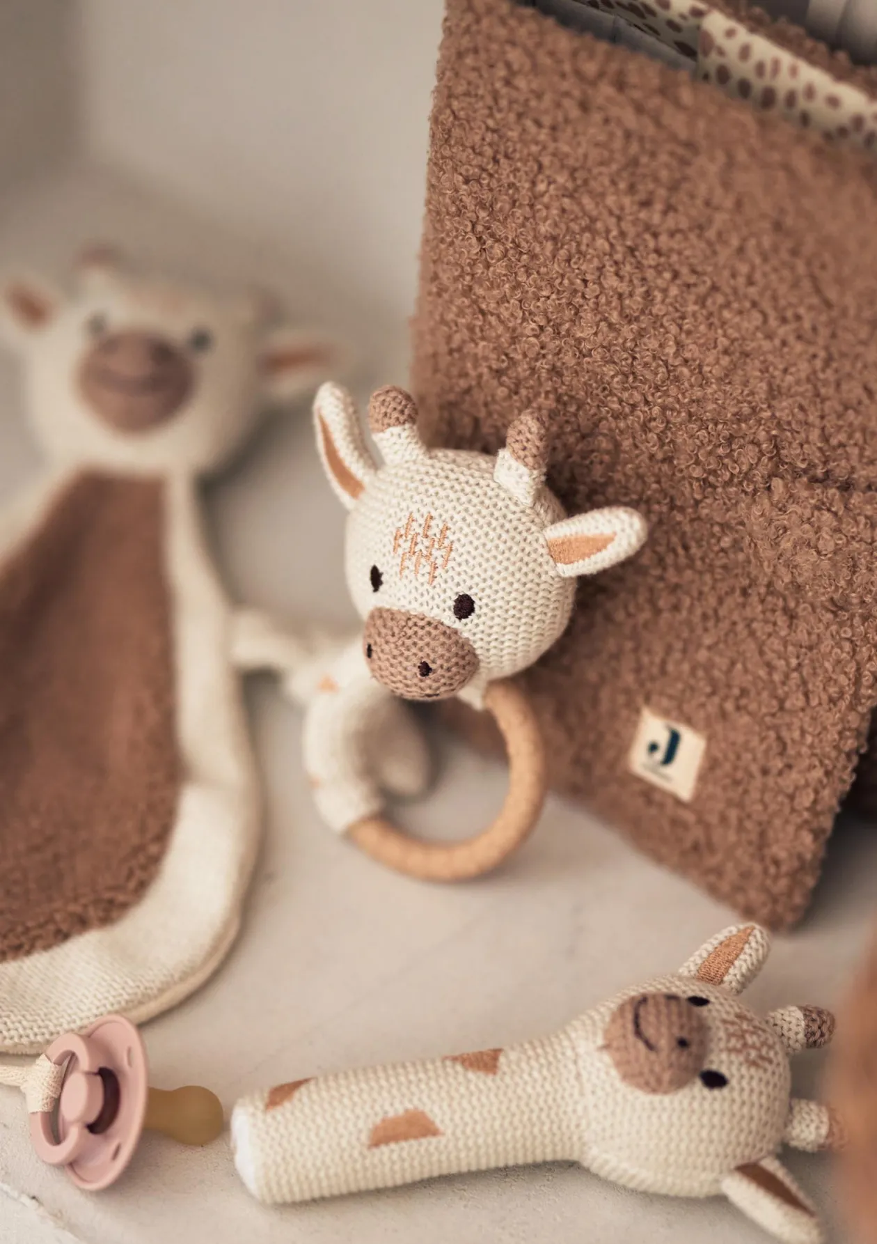 Niedliche Hilfe, wenn die ersten Zähnchen drücken: Der Beißring in süßem Giraffen-Design lindert die Schmerzen. Und wenn die Zähne gerade keine Probleme machen, ist er auch ein tolles Greif-Spielzeug! Im gestrickten Teil ist ein kleines Glöckchen versteckt und regt die Feinmotorik deines Babys an. Auch ein tolles Geschenk zur Geburt! Welches ist dein Lieblingstier?