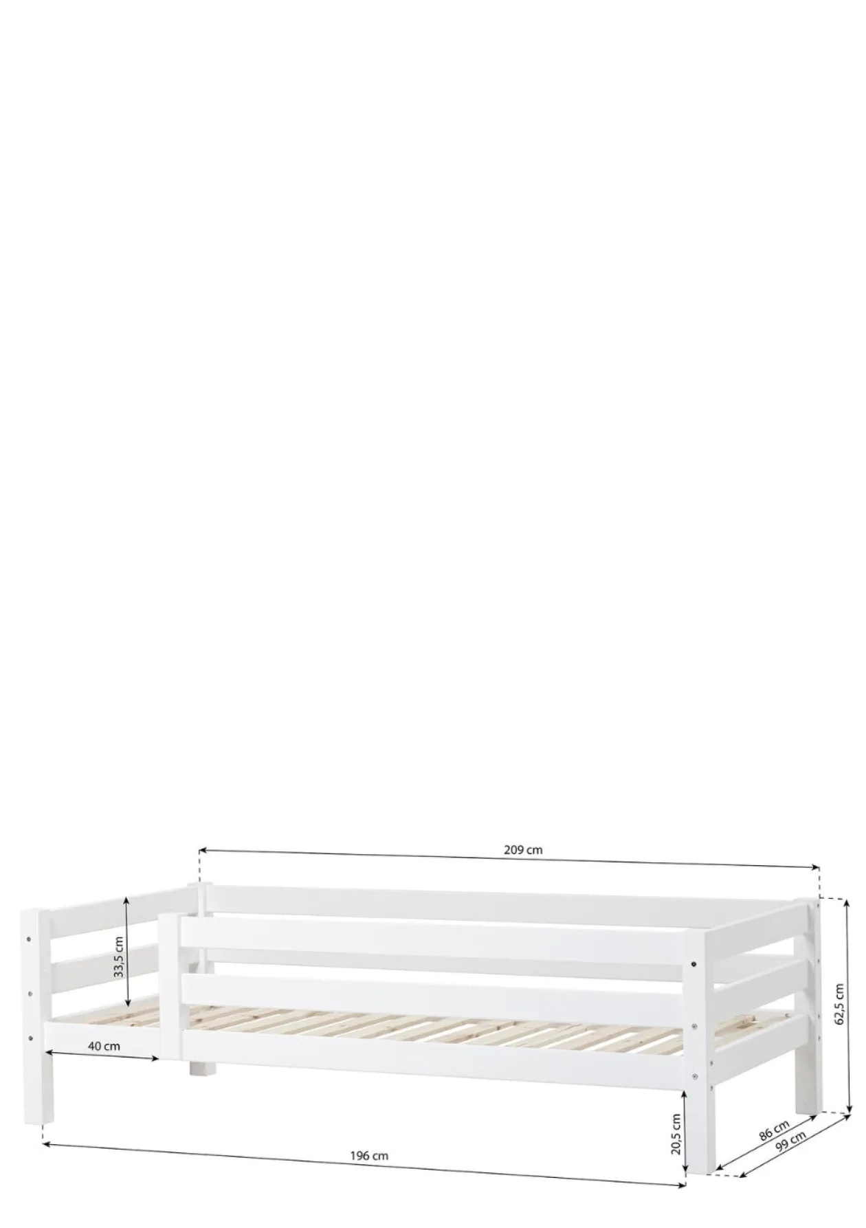 - Bettmaße: L 209 x H 62 x T 99 cm
