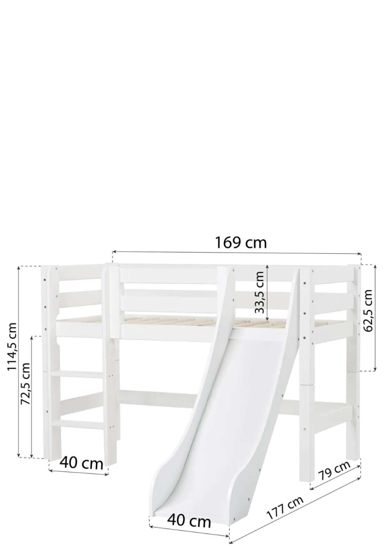 - qualitativ hochwertiges Halbhochbett mit Rutsche