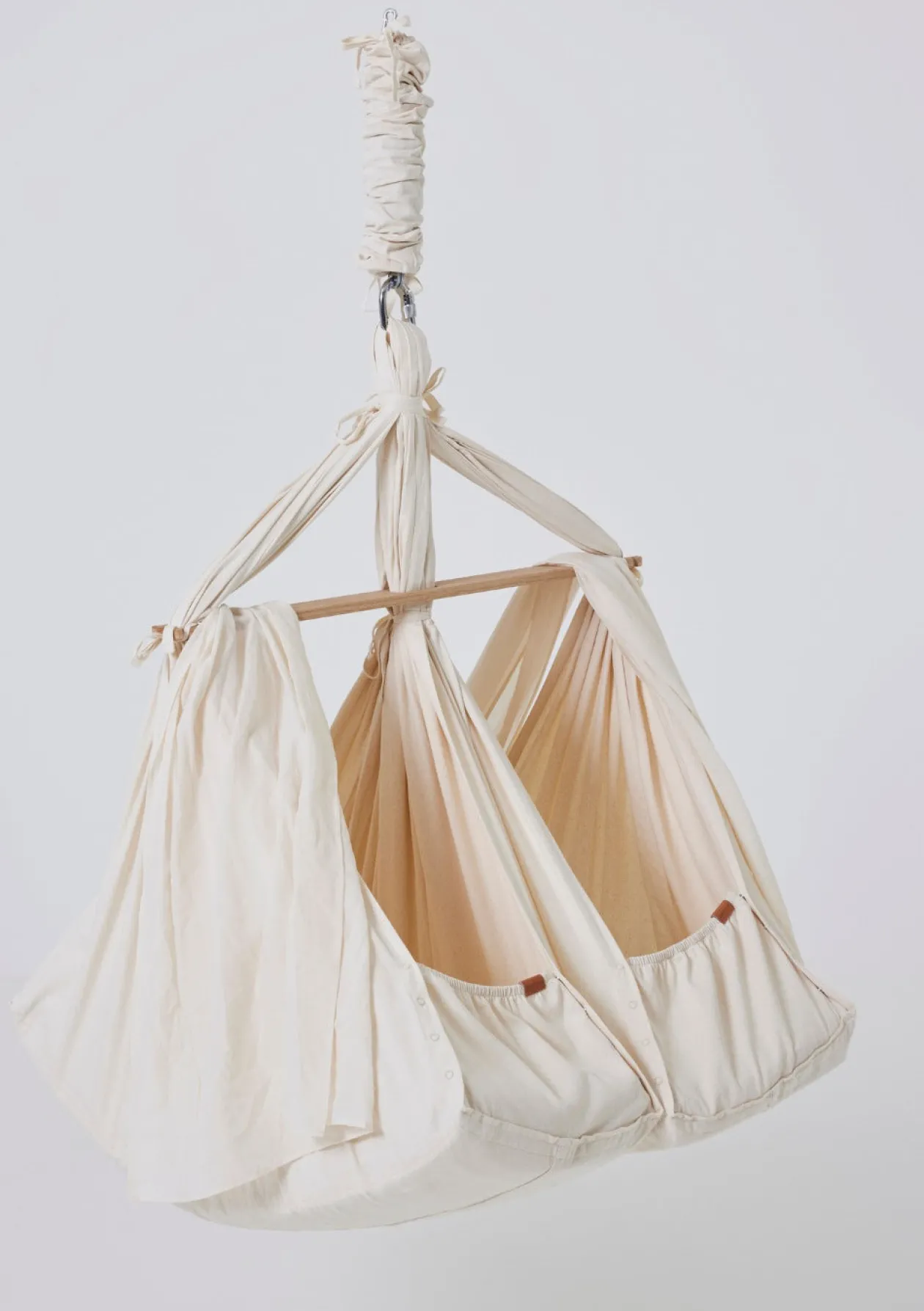 - Premium Zwillings-Federwiege aus ökologischer Baumwolle inkl. Querstange, Feder mit Sicherungsgurt, Stoffbeutel, Woll-Matratzen mit abnehmbarem Bezug / Spannbettlaken mit Stickerei, Karabiner mit Schraubverschluss und Gummiisolierung