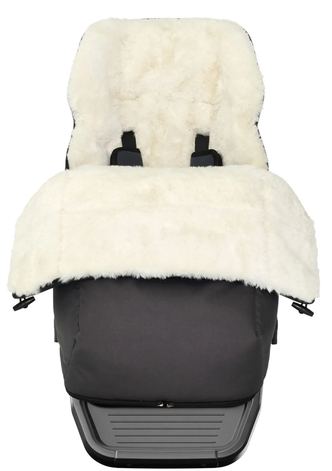 Er hat ein weiches Innenleben aus veganem Lammfell und einen Reißverschluss vorne, damit man ihn bequem öffnen und schließen kann. Der obere Teil des Fußsacks lässt sich abnehmen, sodass ihr ihn auch als Sitzpolster nutzen könnt. Der Fußsack ist maschinenwaschbar und bietet eurem Kind die nötige Wärme und Komfort, um es vor Kälte zu schützen.