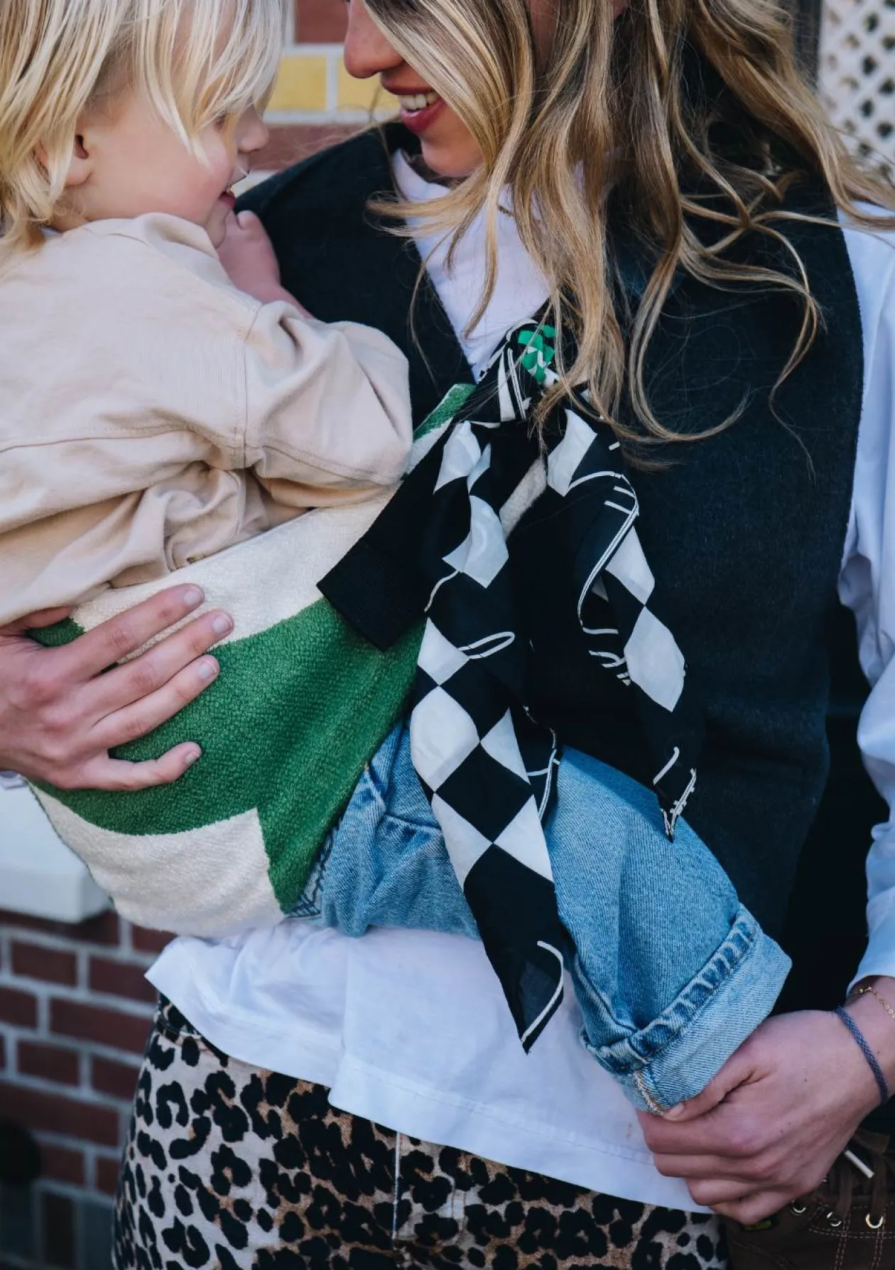 Dieses extra große Tuch begeistert in trendigem Design und ist vielseitig einsetzbar. Du kannst deiner Trage damit eine ganz individuelle Note verleihen oder das Tuch als Schal oder Decke nutzen. Das leichte Gewebe sorgt für ein angenehmes Tragegefühl.