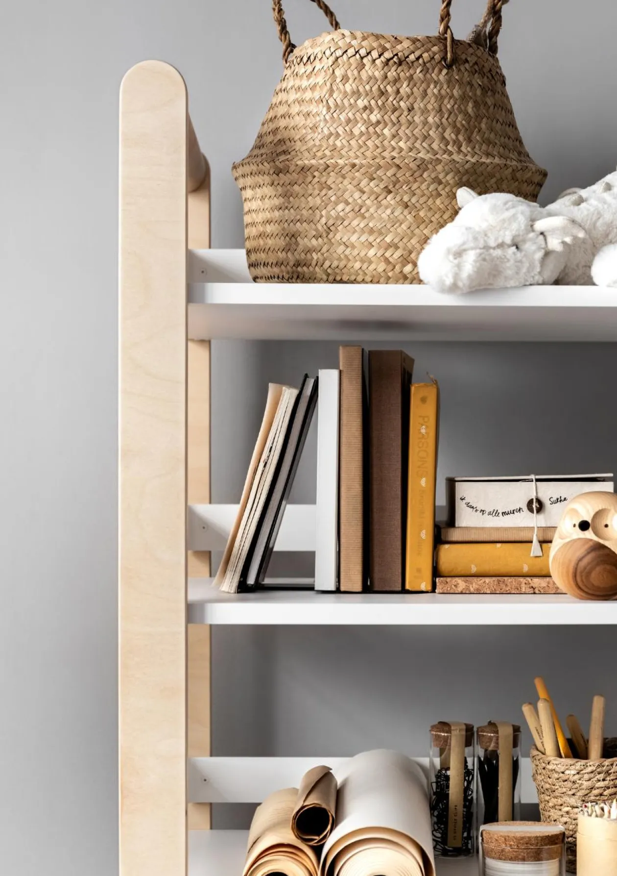 Das H Bücherregal von RAFA-KIDS, dem kreativen Label für zeitlose Kindermöbel, beherbergt nicht nur Bücher, sondern auch andere Gegenstände, wie Spiele, Puzzle und Co. auf äußerst stilvolle Weise. Dafür hält es vier Ablagen und zwei geräumige, sanft schließende Schubladen für euch bereit. Gefertigt ist es, wie alle Designmöbel von Rafa-kids aus erstklassigen und nachhaltigen Materialien. Die Kombination aus Weiß und Holz mit dezenter Maserung bringt einen herrlich natürlichen Look ins Kinderzimmer. Das Bücherregal lässt sich wunderbar mit den anderen Möbelstücken der Marke kombinieren, macht aber auch als Solo-Künstler im Raum optisch was her.