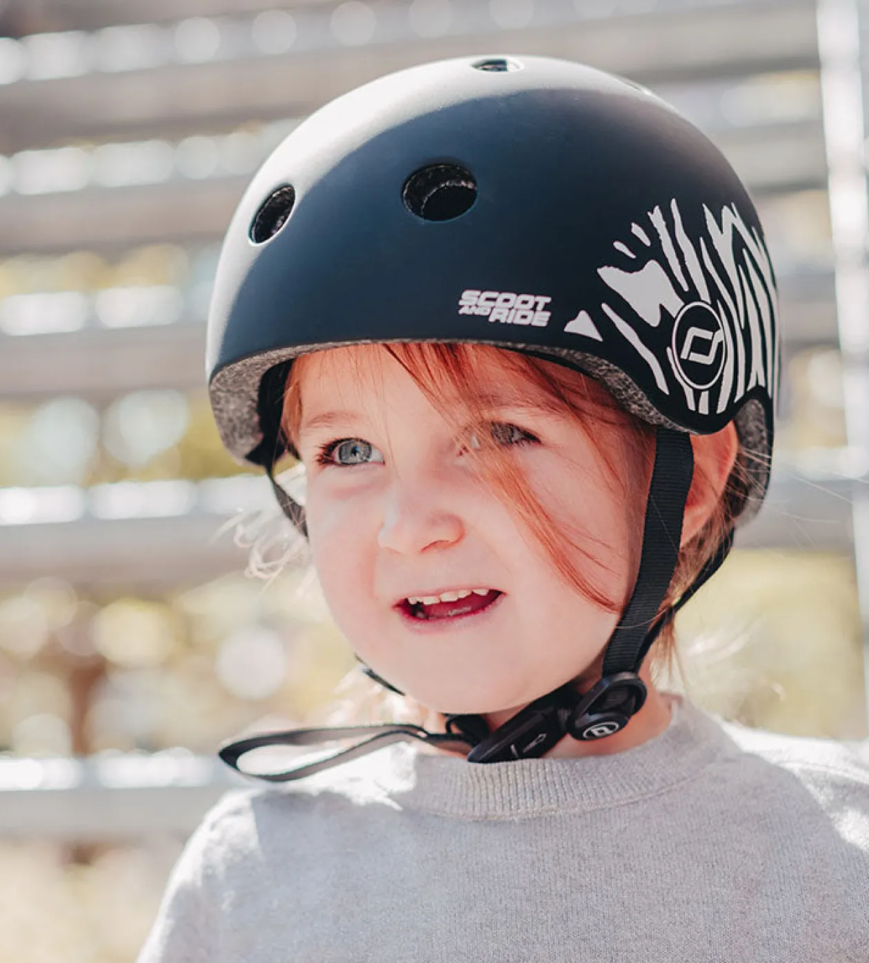 Sehen und gesehen werden: Die oberste Regel im Straßenverkehr. Mit dem stylischen Helm von SCOOT AND RIDE fällt dein Kind auf – im Hellen und im Dunkeln!