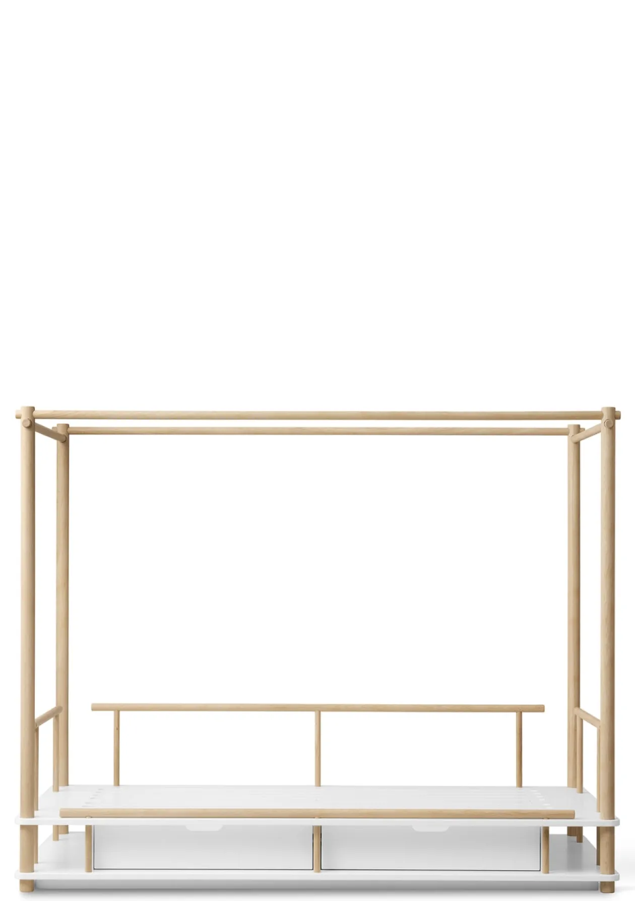 Hochwertige Materialien, ausgezeichnetes Design und ein Hauch japanischer Ästhetik vereint in einem Möbelstück: dieses zauberhafte Himmelbett versprüht pure Natürlichkeit und lässt dein Kind schlafen wie auf Wolken. Mit seinem Maß von 90 x 180 cm ist das Camp Bett für Kinder ab etwa drei Jahren geeignet und begleitet deinen Liebling bis ins Teenageralter. Die klassische Rahmenkonstruktion aus massivem Eichenholz verleiht dem Bett ein Höchstmaß an Stabilität, während die im Lieferumfang enthaltenen Schubladen Stauraum schaffen. Zu einem optischen Hingucker wird das zeitlose Bett in Kombination mit einem der vier separat erhältlichen Betthimmel, die speziell für dieses Modell kreiert wurden. Durch sie entsteht ein behaglicher Rückzugsort zum Wohlfühlen, Ausruhen und Entspannen.