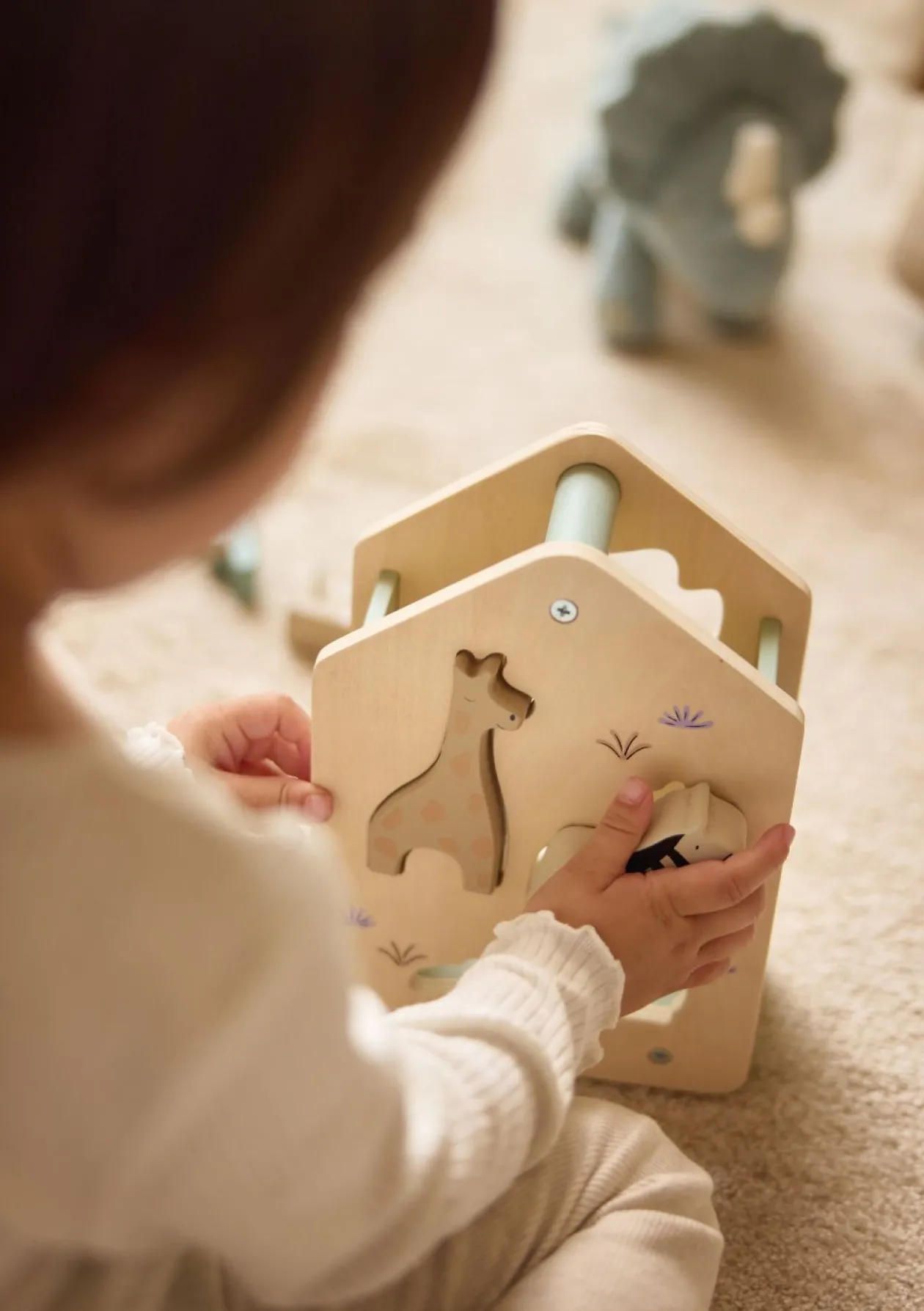 Dschungeltiere kennenlernen und ein erstes Verständnis für Formen entwickeln – mit der schönen Holz-Sortierbox aus der Jungle Jambo-Kollektion von JOLLEIN
