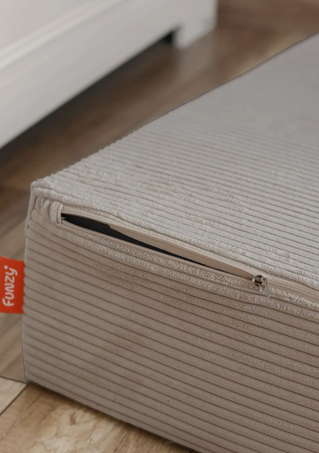 Toben, springen, träumen: Mit diesem coolen Polstermöbel verwandelst du das Kinderzimmer in einen Ort voller Lachen, Spielspaß und Gemütlichkeit. Entwickelt für kleine Energiebündel greift die federnde Hüpfmatte den natürlichen Bewegungsdrang von Kindern auf und unterstützt die Entwicklung von Koordination und Körperbeherrschung. Der hochwertige Kern aus PUR-Schaumstoff mit integriertem Taschenfederkern bietet die ideale Kombination aus Komfort und Sprungkraft und sorgt dafür, dass das Polster jede Menge Tobespaß aushält. Alternativ fungiert es aber auch als bequemes Sitzmöbel zum Kuscheln und Relaxen. Der weiche, strapazierfähige Cordbezug fühlt sich super angenehm an und lässt sich ganz unkompliziert in der Waschmaschine reinigen – perfekt für den turbulenten Familienalltag. Ob als Erweiterung zum legendären Funzy Spielsofa oder als flexibler Solo-Künstler, das formstabile Hüpfpolster bringt Freude, Bewegung und Stil in dein Zuhause.