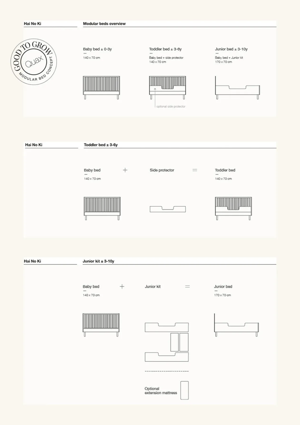 Mit diesem Umbauset für euer ‚Hai No Ki‘ Babybett wächst das Bett zusammen mit dem Nachwuchs. Die Liegefläche lässt sich so auf 170 cm x 70 cm erweitern. Das reicht für das ganze erste Jahrzehnt!