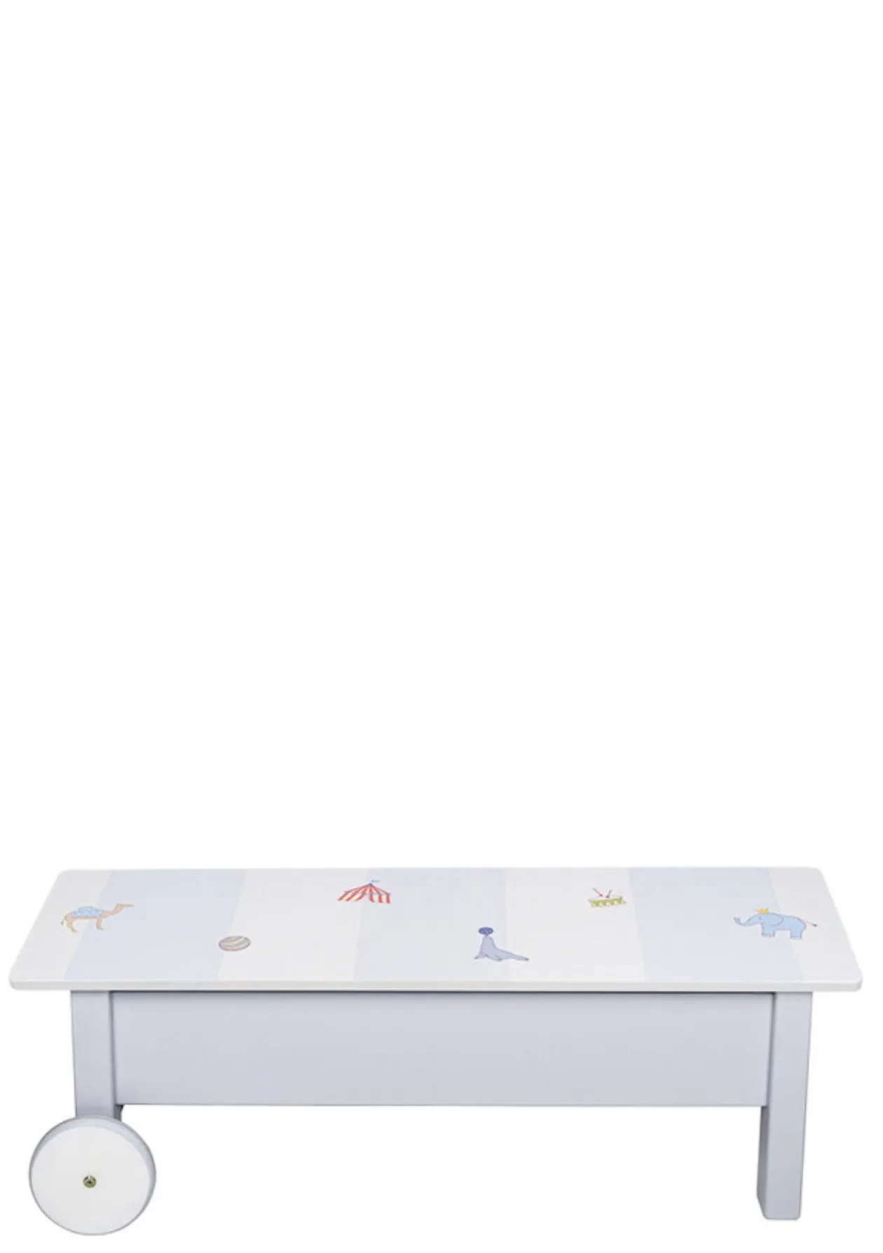 Mobile Sitzgelegenheit mit Stauraum: die Kinderbank von ISLE OF DOGS DESIGN – wunderschön handbemalt mit Motiven nach Wahl!