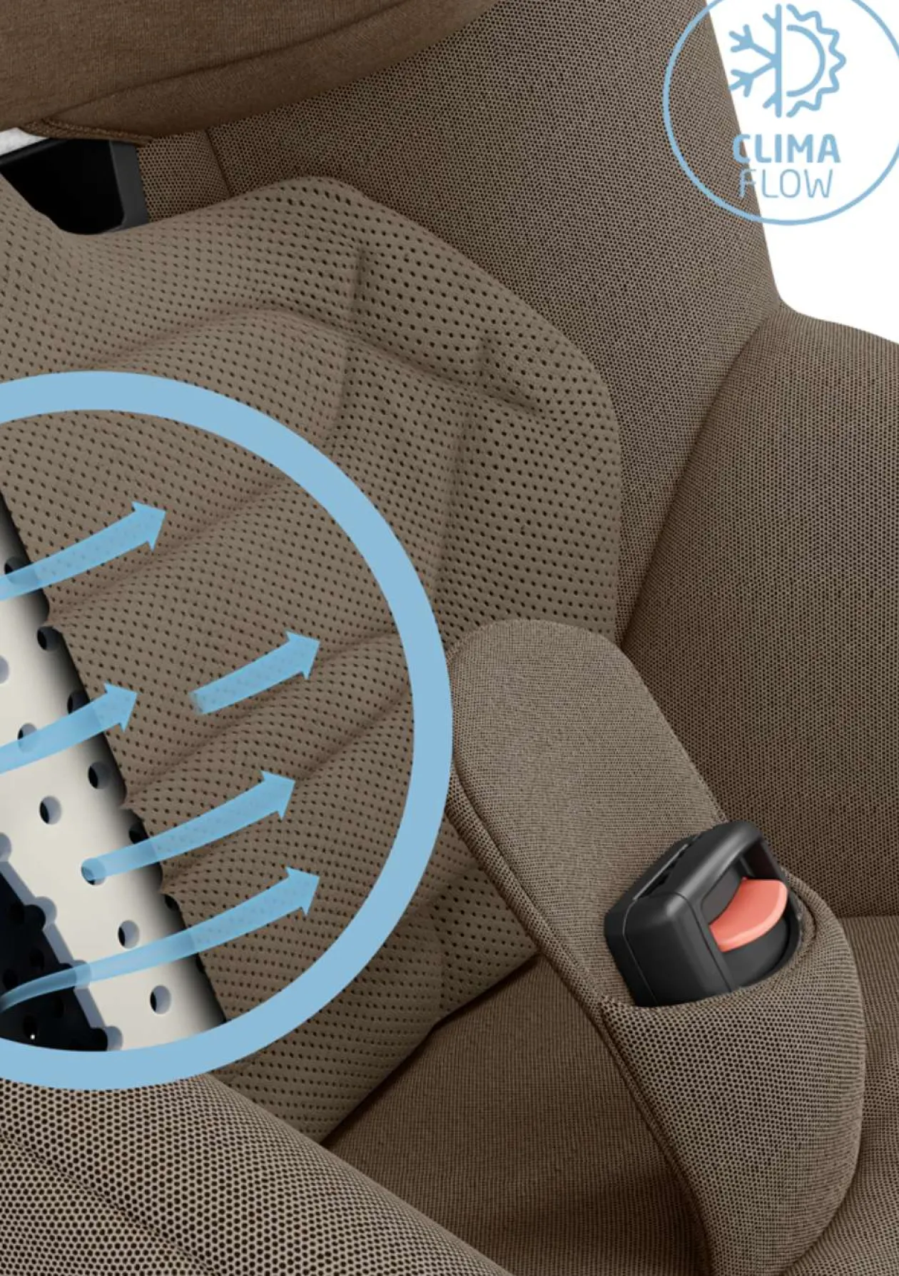 - ClimaFlow-Temperaturregulierung: Clima Flow-Paneele, atmungsaktiver Schaumstoff und klimaregulierende Mesh-Stoffe sorgen für eine angenehme Luftzirkulation und höchstes Wohlbefinden unterwegs
