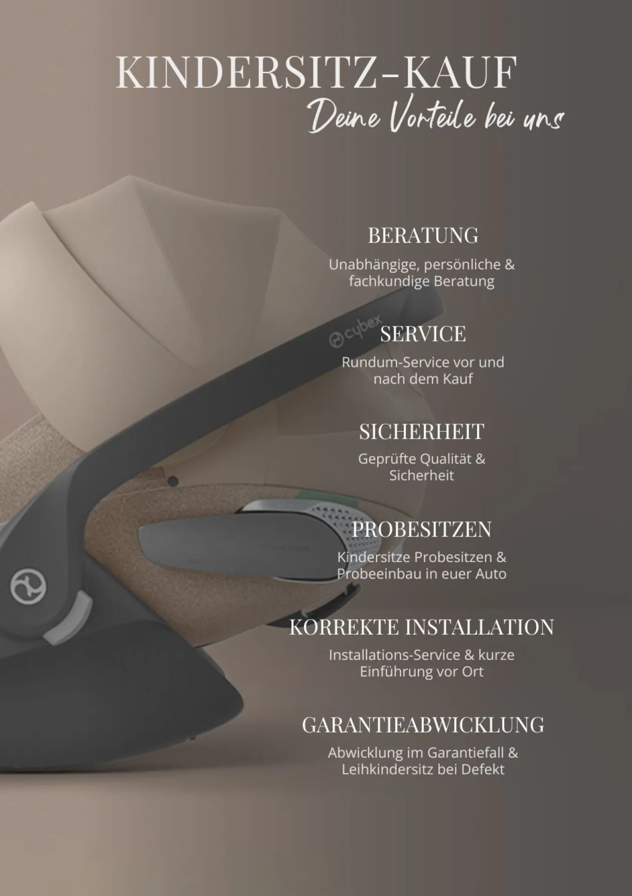 Seit Einführung der i‑Size-Norm sind unsere Kindersitze in der Regel mit den meisten modernen Fahrzeugen kompatibel. Wenn ihr ein besonders großes Fahrzeug, einen Van oder Bus fahrt oder ein Auto ohne i‑Size‑gekennzeichnete Sitzplätze nutzt, empfiehlt es sich, vorab per E‑Mail, telefonisch oder direkt vor Ort Rücksprache mit einem unserer Fachgeschäfte zu halten. Ein gemeinsamer Testeinbau in euer Fahrzeug ist jederzeit möglich, um die Kompatibilität zu prüfen und maximale Sicherheit zu gewährleisten.