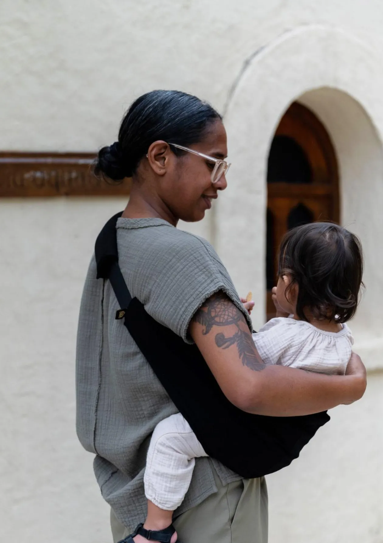 Besonders praktisch: Die Kindertrage ist in verschiedenen Ausführungen erhältlich. Einfarbig oder mit coolem Dessin? Wähle die Trage, die perfekt zu deinem Stil passt.