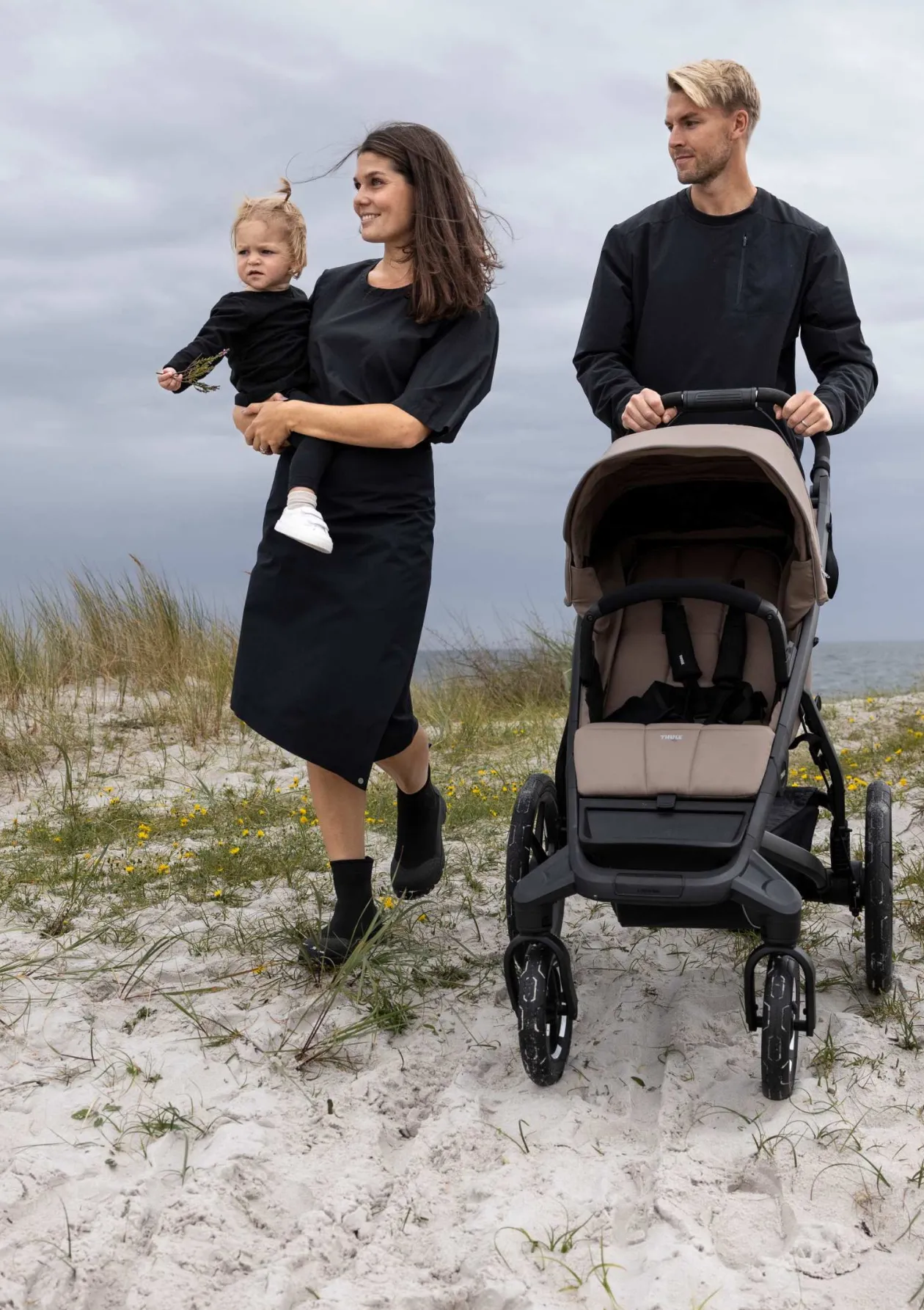 Dieser vierrädrige Kinderwagen, welcher für sein hervorragendes Produktdesign mit dem Red Dot Design Award 2024 ausgezeichnet wurde, ist dein zuverlässiger Begleiter für jedes Terrain. Das Modell verfügt über eine hochwertige Federung und bewährt sich sowohl beim Bummel durch die City als auch beim Spaziergang in der Natur. Die großen Räder garantieren ein komfortables Fahrgefühl und sorgen dafür, dass die Fahrt auch auf unebenem Gelände nicht zu schaukelig wird, so dass dein Kind sich jederzeit wohl und geborgen fühlt. Eine sehr gute Sichtbarkeit wird durch reflektierende Elemente an den Felgen und am Verdeck des Kinderwagens gewährleistet. Ein weiterer Sicherheitsfaktor ist die integrierte Drehgriffbremse für schnelles und sanftes Bremsen.