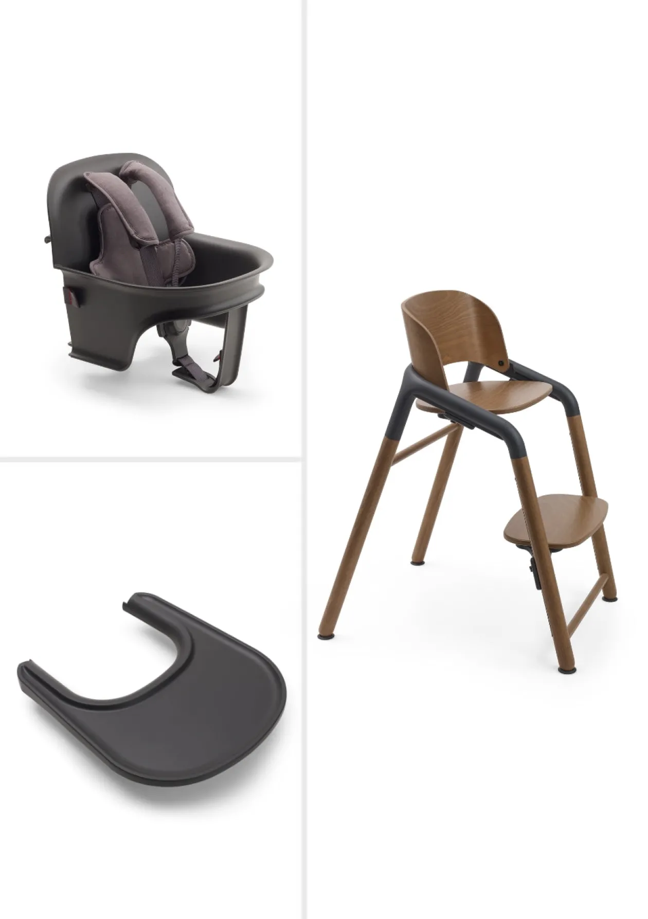 Komplettes Hochstuhl-Set ‚Giraffe‘ warmes Holz / Grau