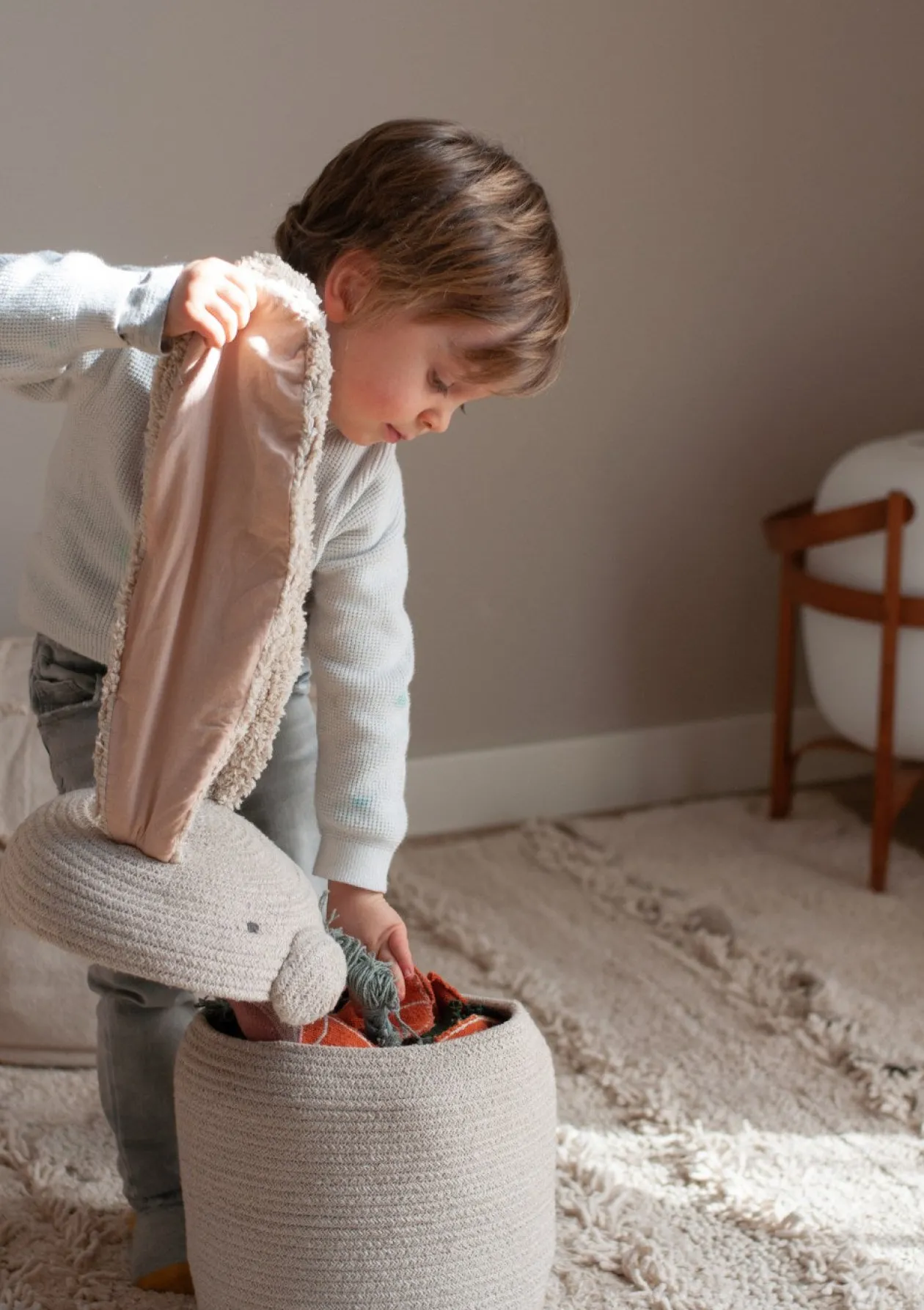 Ob Spielzeug oder kleine Schätze – dieser liebevoll gestaltete Korb im Häschen-Design bringt spielerisch Ordnung ins Kinderzimmer. Rita begeistert mit ihren extra langen, kuschelig weichen Hasenohren und lädt kleine Entdecker dazu ein, mit Spaß aufzuräumen.