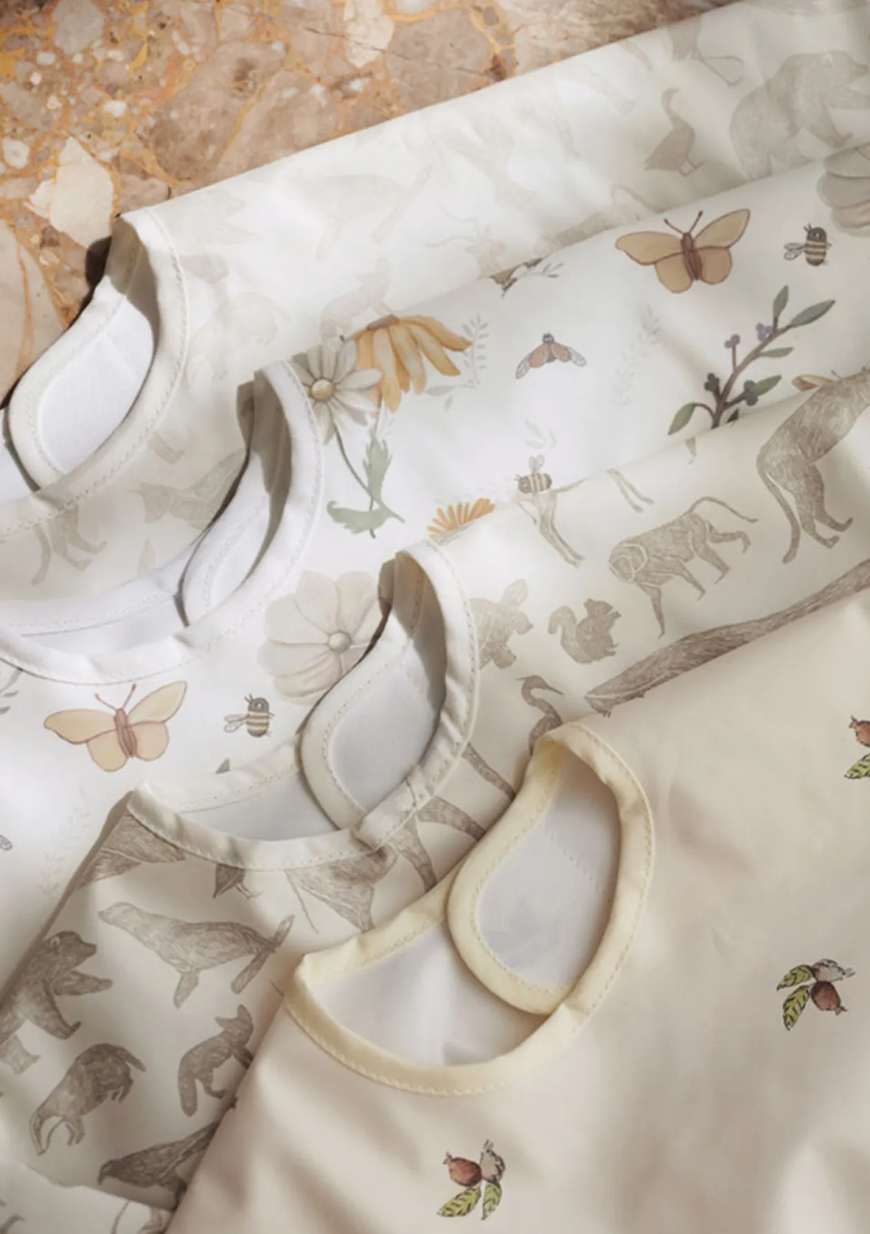 Hier darf sorglos probiert und entdeckt werden was die Küche so alles hergibt. Das wasserdichte Lätzchen mit langen Ärmeln hat einen praktischen aufgenähte Auffangschutz, der sich um Krümel und Kleckerei jeglicher Art bestens kümmert. Blitzschnell ist das Lätzchen angezogen und die nächste Mahlzeit darf serviert werden.