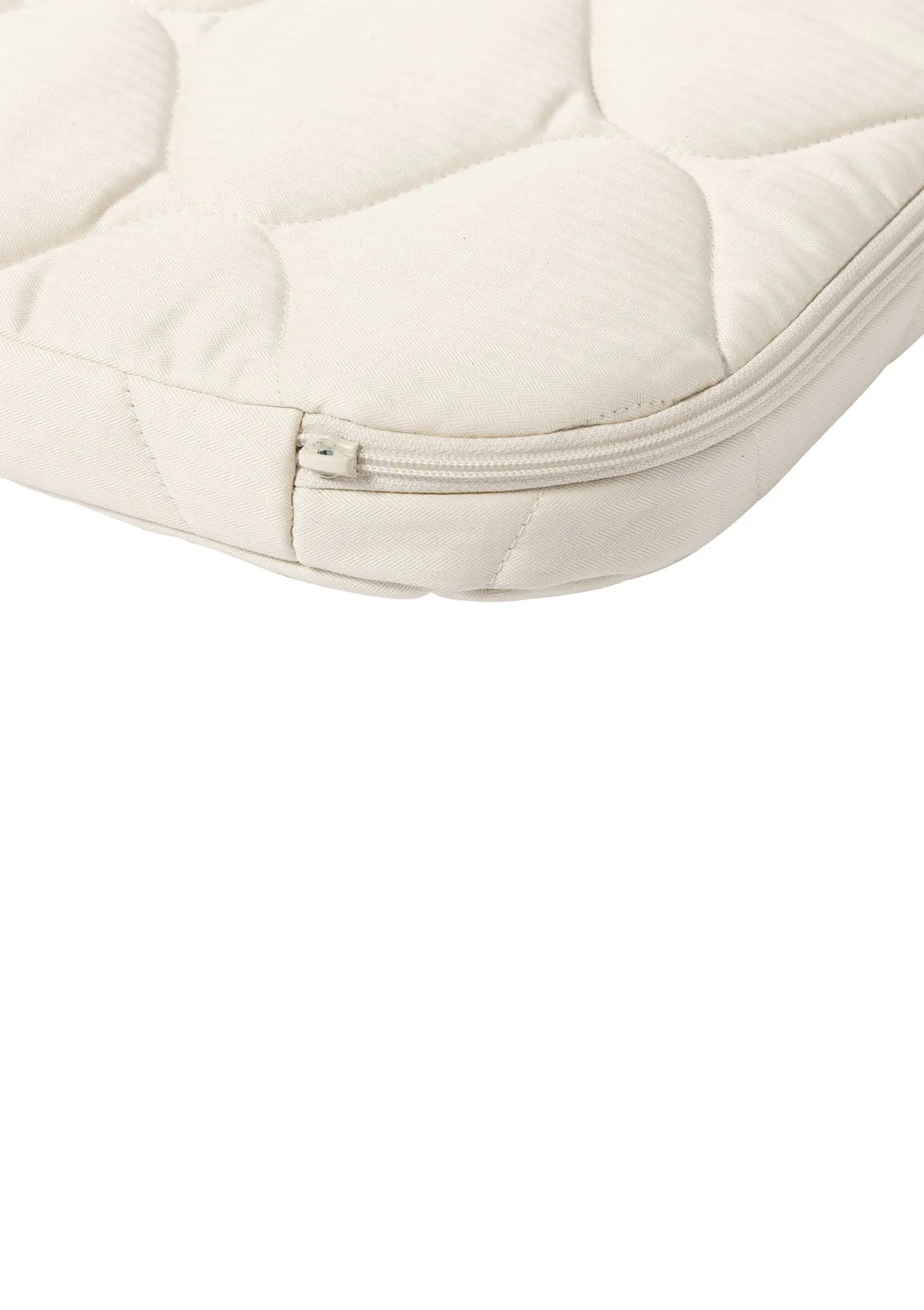 - Bio-Fischgrat-Baumwolle (GOTS-zertifiziert), versteppt mit einer Schicht aus Öko-Tex-zertifiziertem recyceltem PET