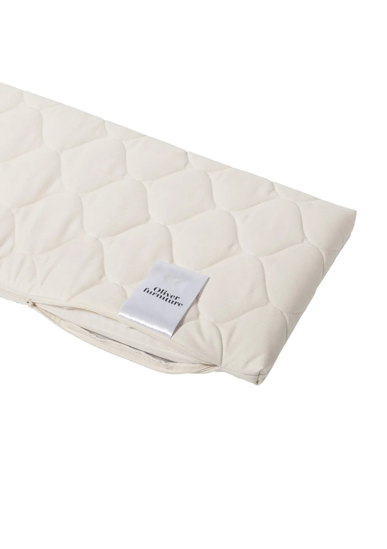 Diese Matratze des Herstellers OLIVER FURNITURE ist im Kern aus weichem, Öko-Tex zertifiziertem Kaltschaum und ummantelt von einem abnehmbaren Bezug aus Bio-Fischgrat-Baumwolle.