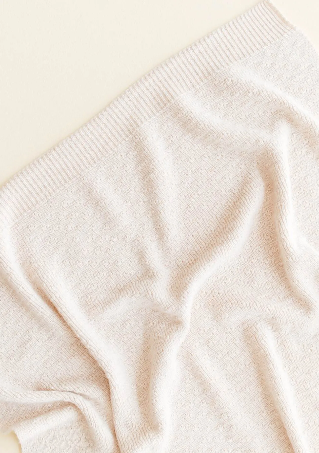 Die Wolle des Merinoschafs ist unglaublich weich und angenehm auf der Haut. Verstrickt in einer besonderen, gerippten Technik, hält sie dein Baby auch an kalten Tagen warm.