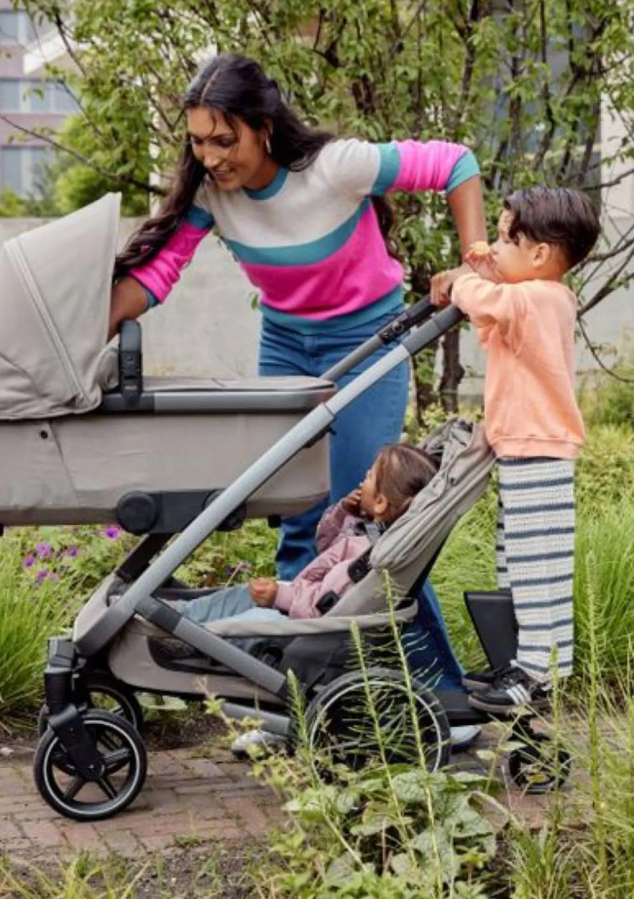 - Mitfahrbrett fürs ältere Geschwisterkind (ab etwa 2 Jahre)