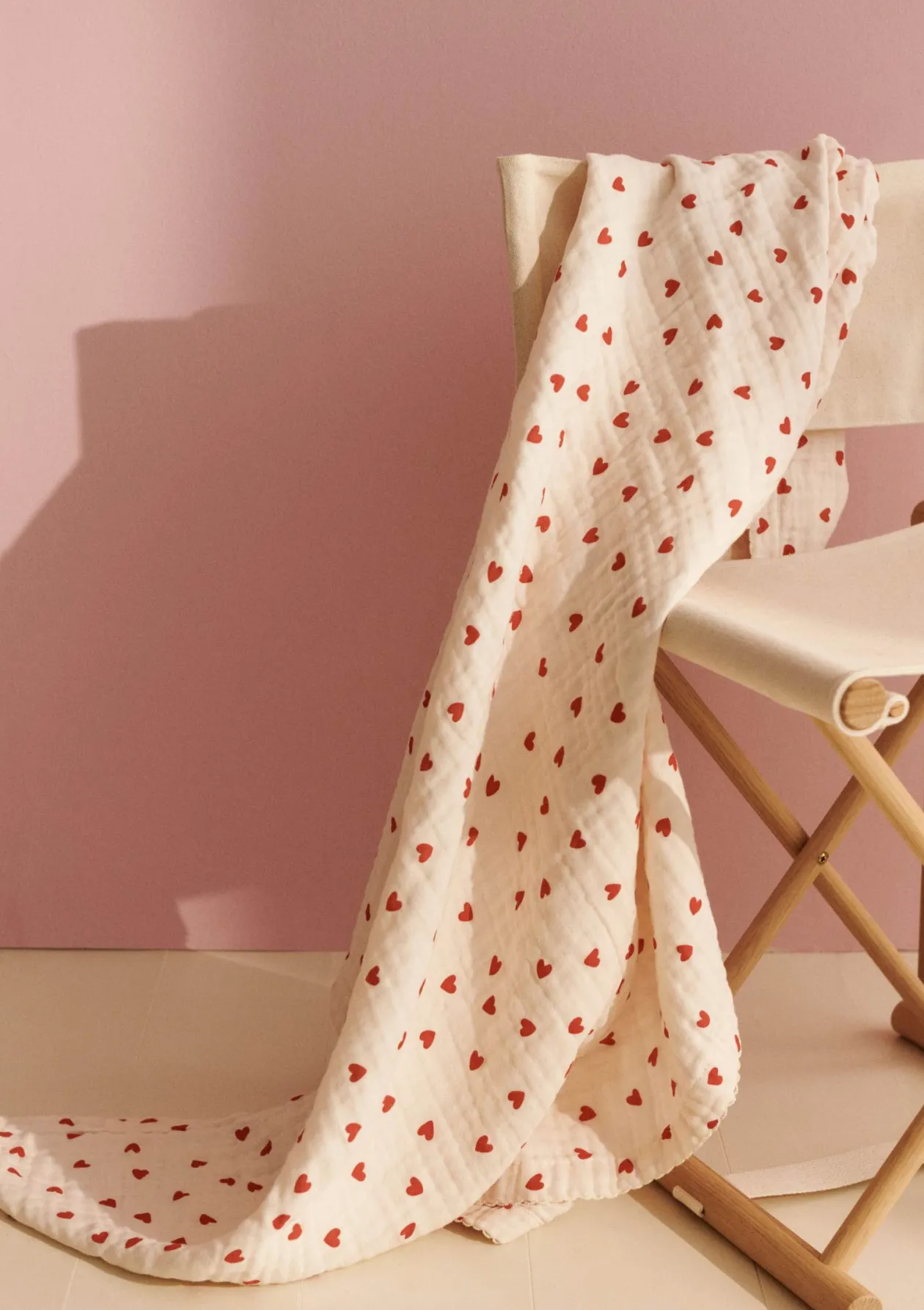 Hübsche Herzen, weicher Komfort: die Musselin-Babydecke Murray von DEAR APRIL