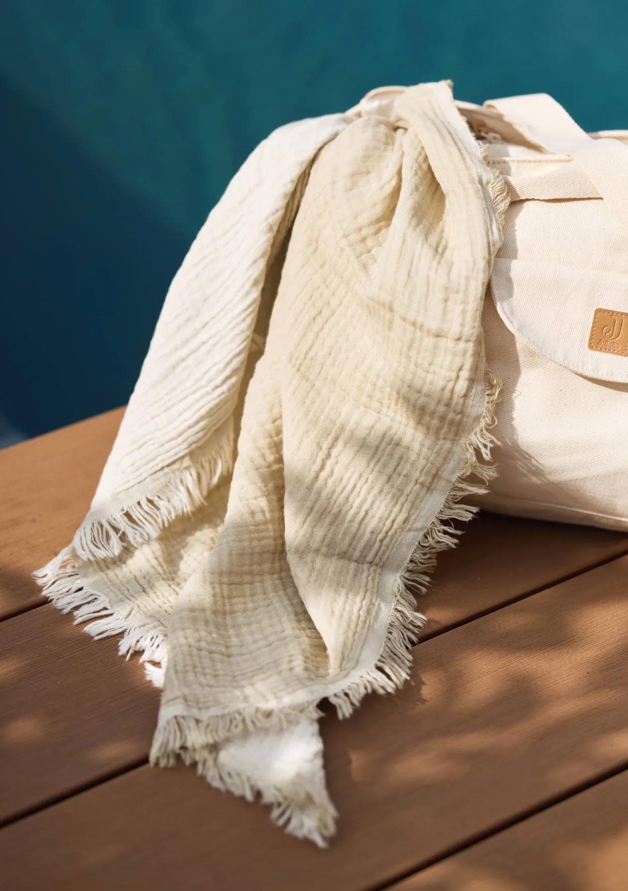 Zum Einkuscheln, Wohlfühlen und Mitnehmen: die Musselin-Babydecke aus Bio-Baumwolle von JOLLEIN