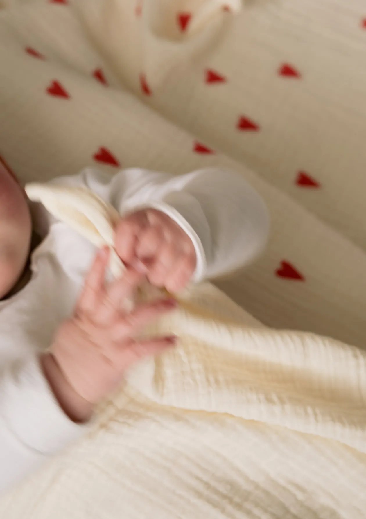 Musselin Mulltuch ‚Swaddle Print Large‘ Beige Hearts 120 x 120 cm
