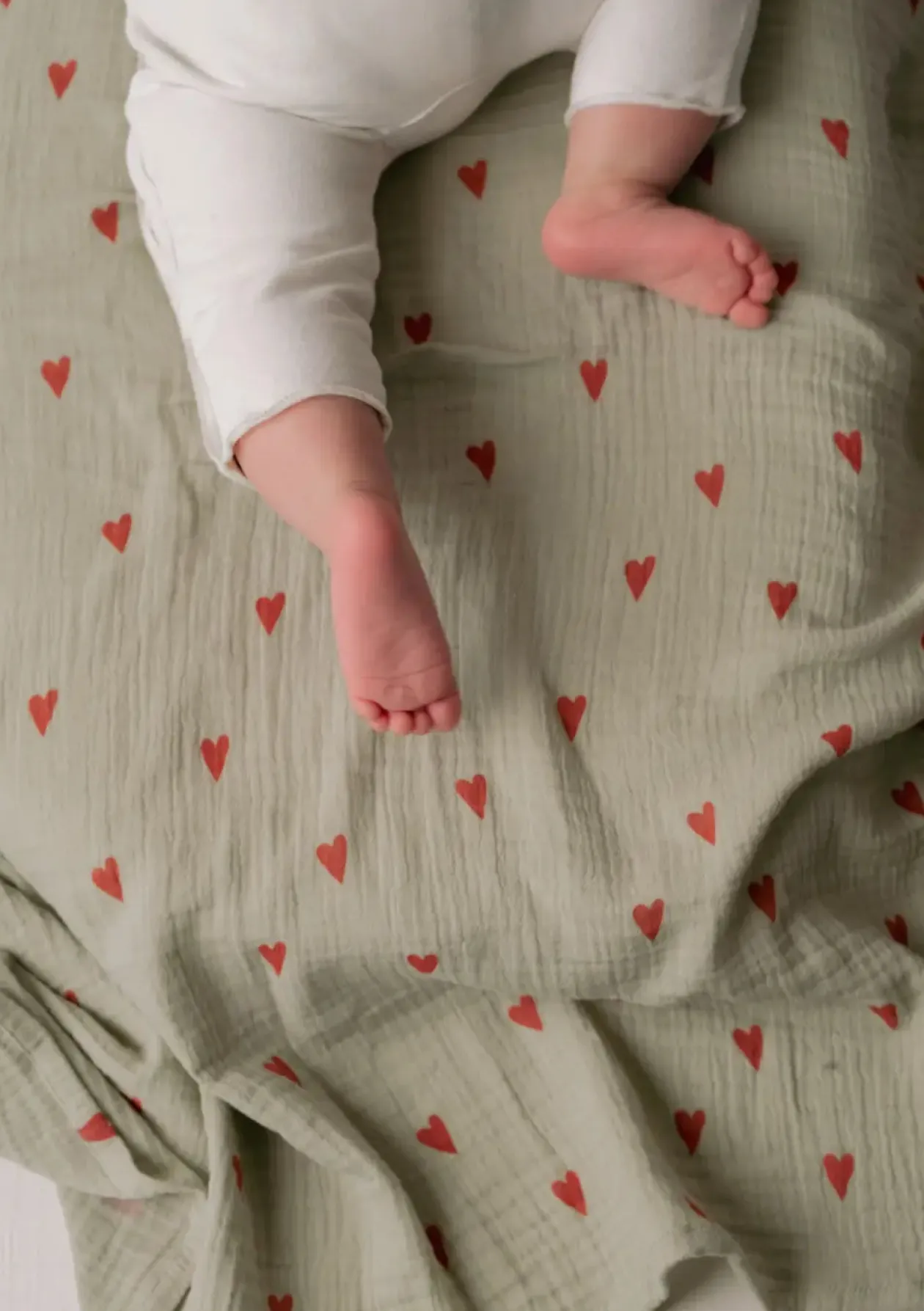 Musselin Mulltuch ‚Swaddle Print Medium‘ Green Hearts 70 x 70 cm