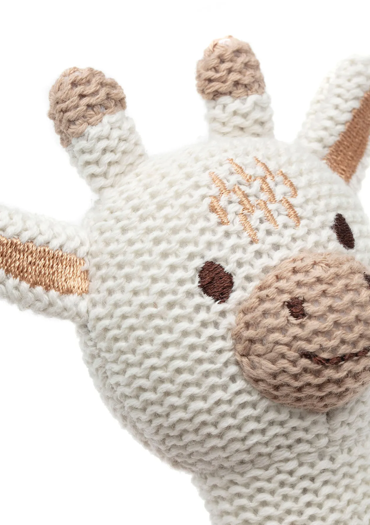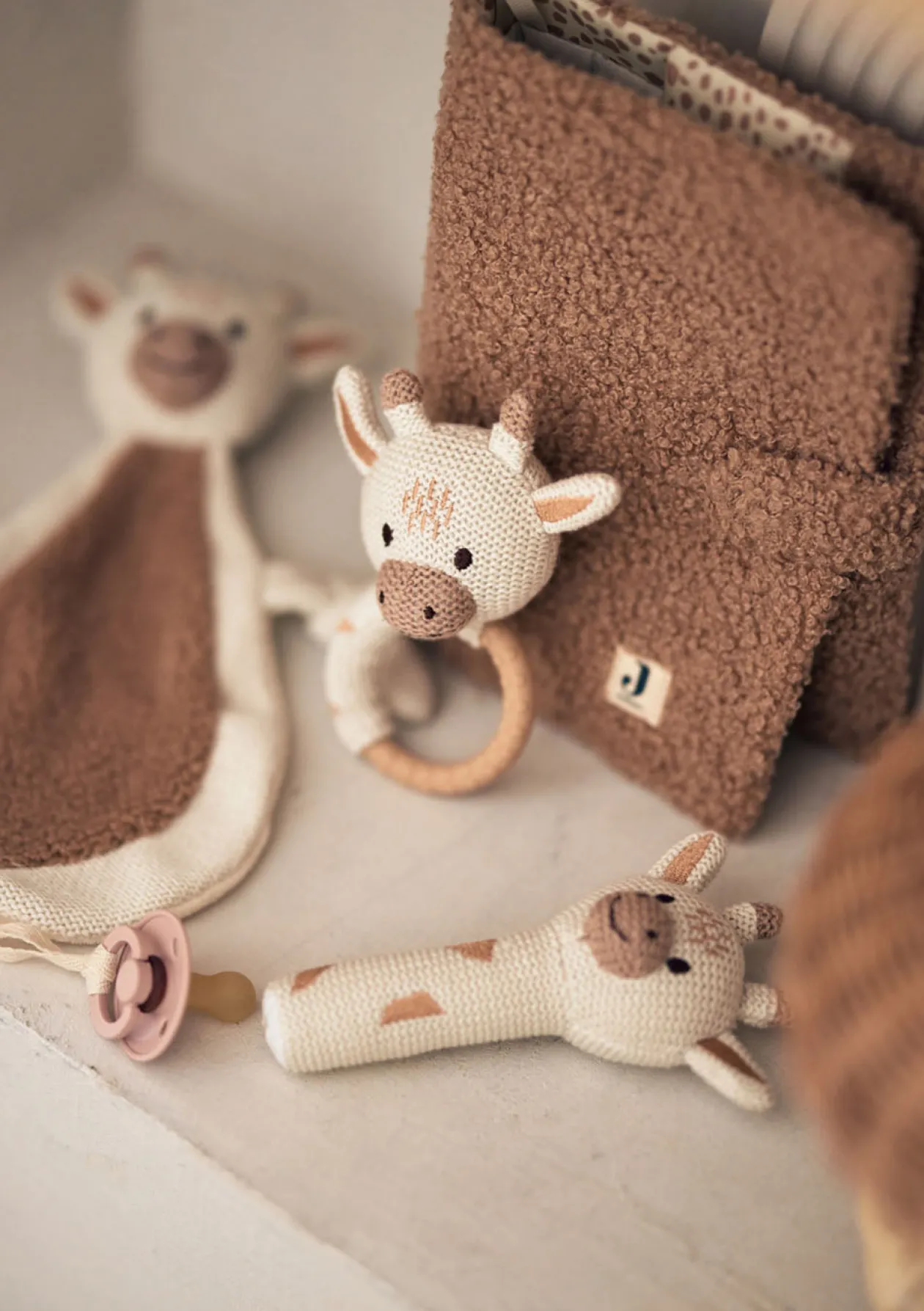 Diese süße Babyrassel hat eine angenehm weiche Strickoptik und ist selbst für die Kleinsten gut zu halten. Ein kleines Glöckchen im Inneren erzeugt beim Bewegen schöne Klänge und sorgt so für entzückende Unterhaltung.