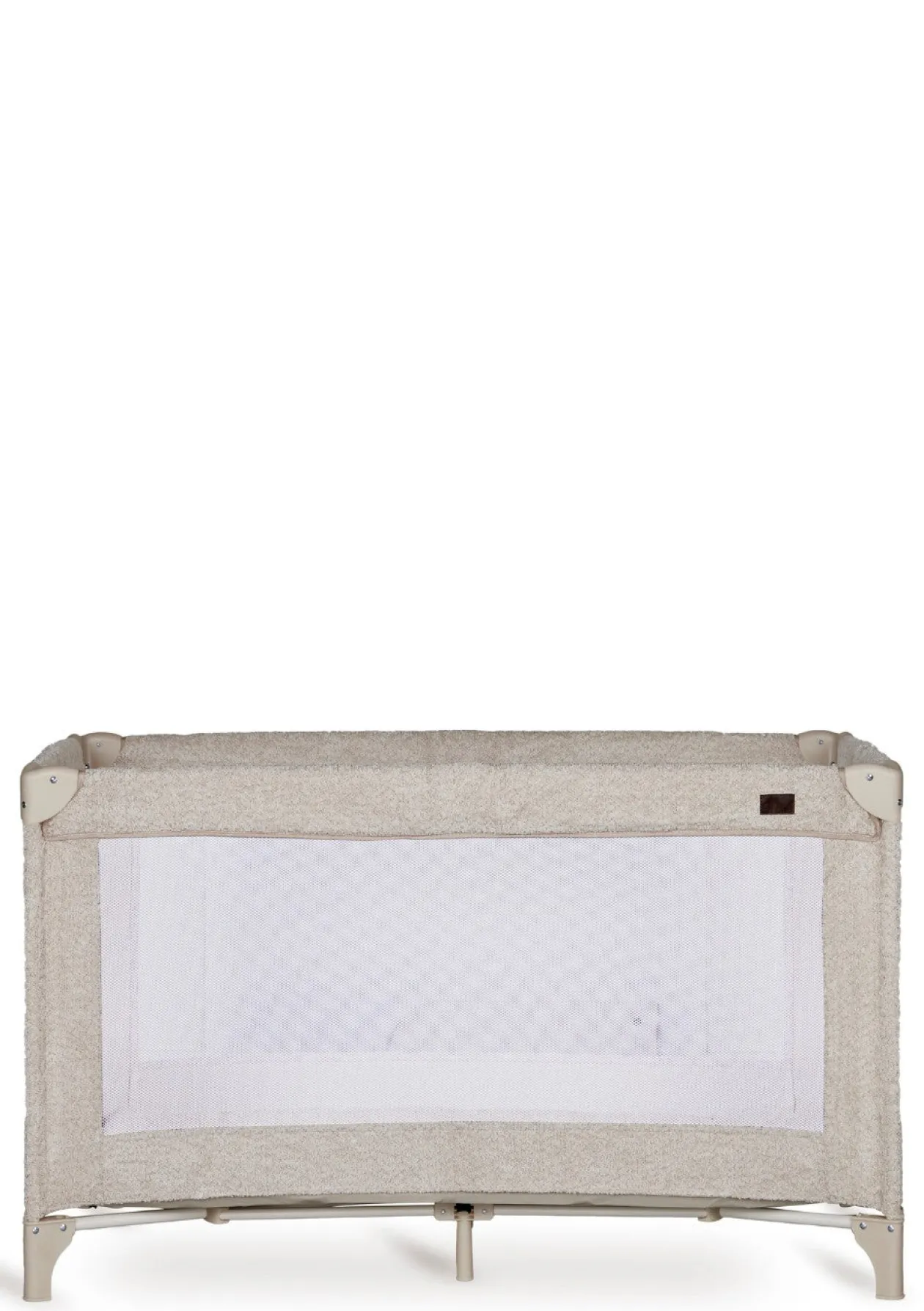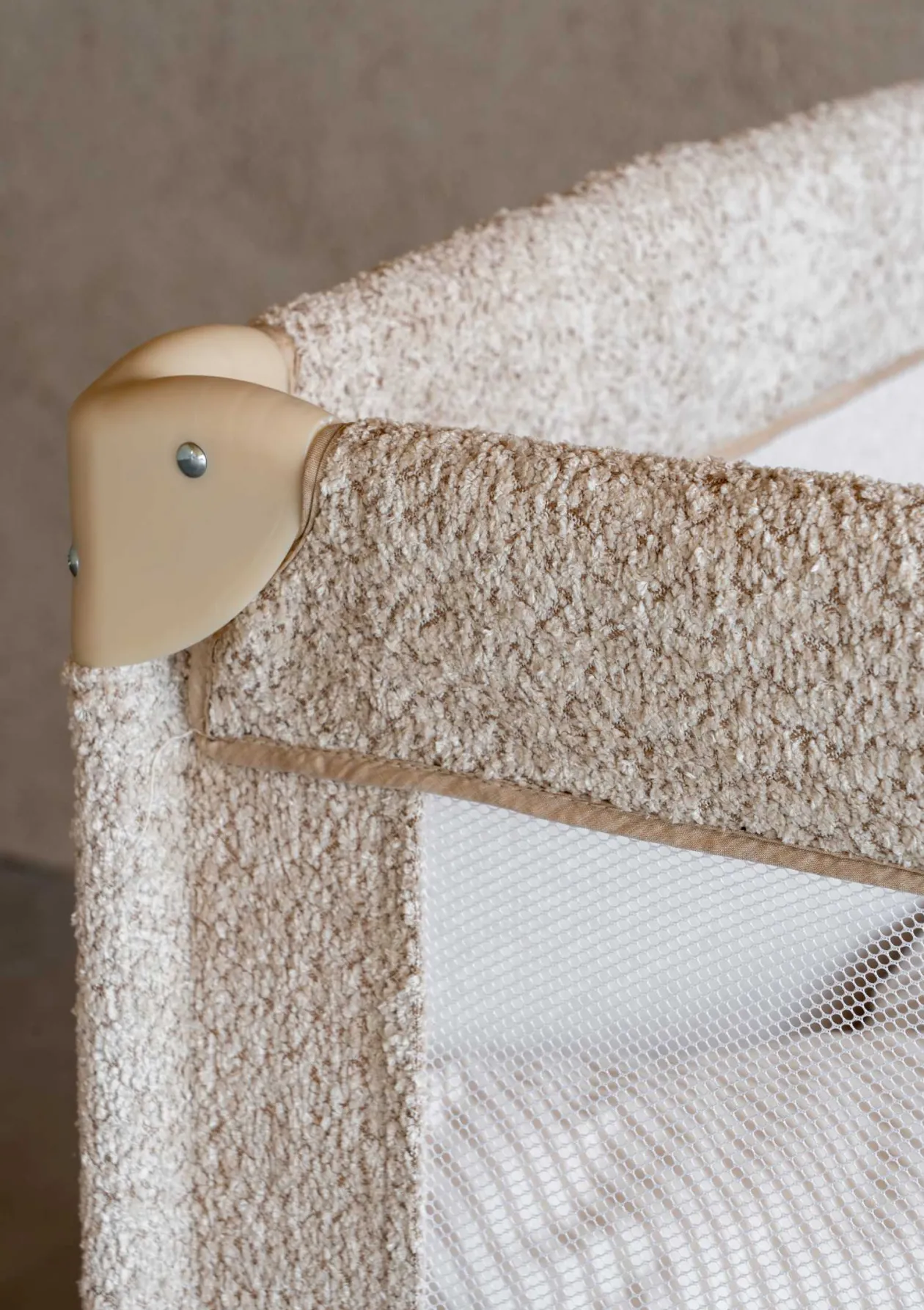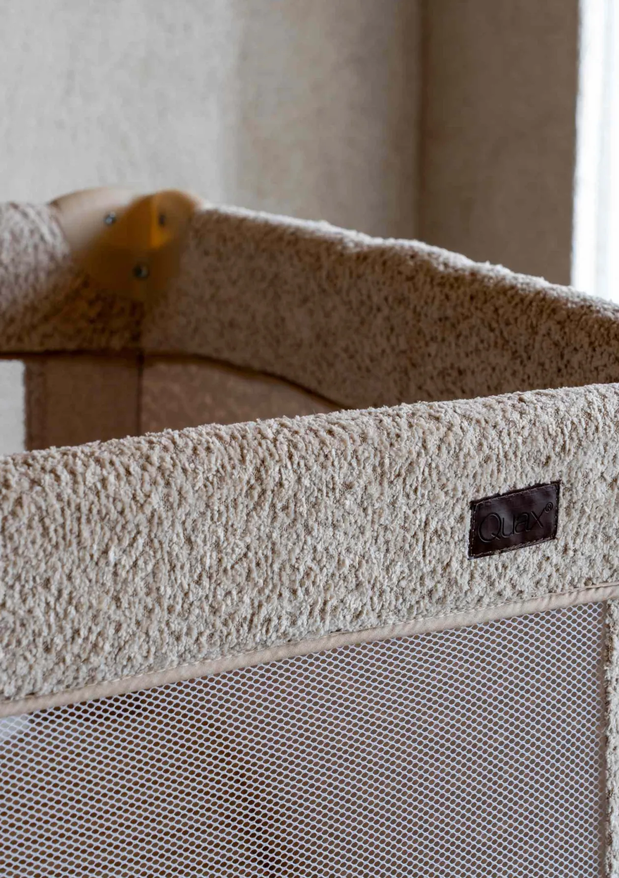 - modernes Reisebett mit weicher Bouclé-Optik