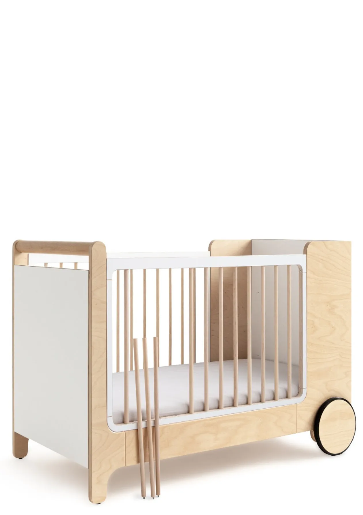 Cleveres Feature für die Anfangszeit: Durch die am Bett befestigten Räder wird ein Wipp-Mechanismus in Gang gesetzt, der dir dabei hilft, dein Baby zu beruhigen und sanft in den Schlaf zu wiegen.
