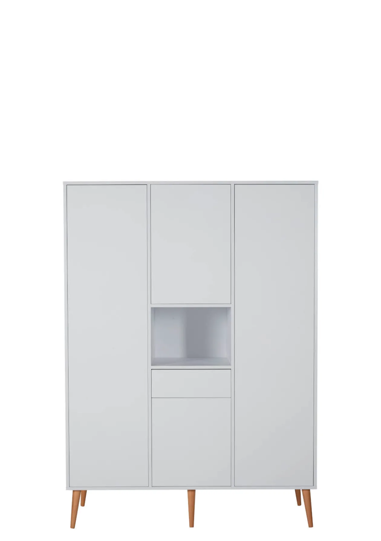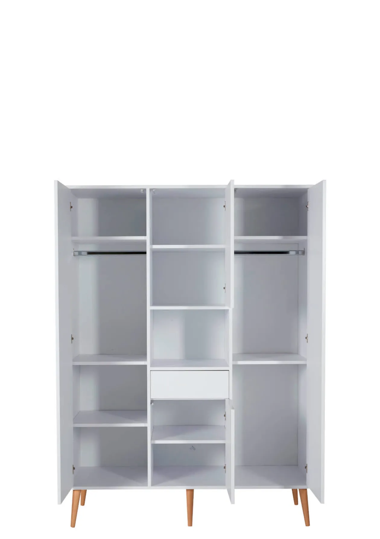 - Sieben variable Einlegeböden, zwei Kleiderstangen und ein offenes Fach