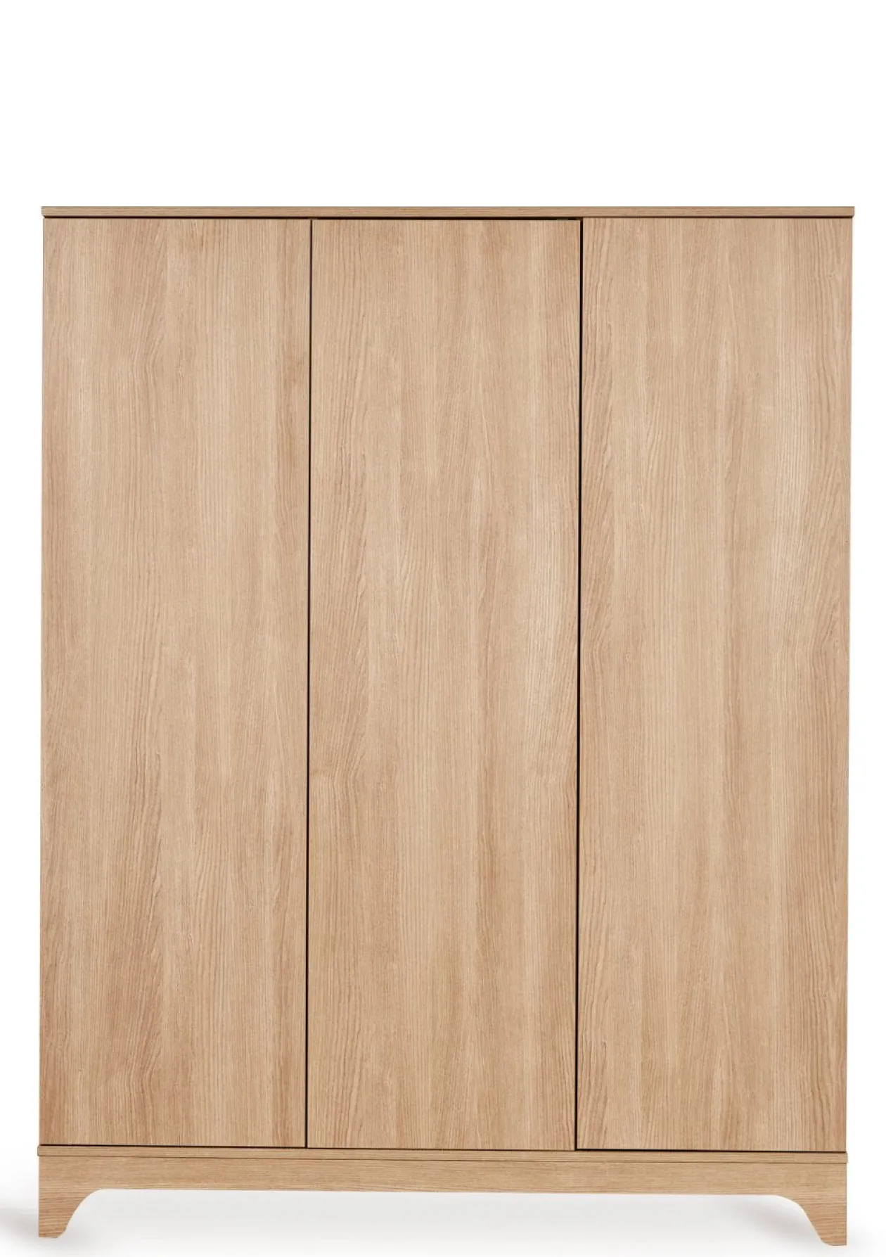 Hinter den drei Türen verbirgt sich ein durchdachtes, großzügiges Innenleben mit Kleiderstangen und Einlegeböden, die flexibel einsetzbar sind. So bietet der Schrank reichlich Platz für Kleidung, Wäsche, Spielsachen und Accessoires – alles bleibt übersichtlich und gut organisiert. Das grifflos gestaltete Design mit Push-to-open-System unterstreicht die ruhige, klare Ästhetik der Serie und sorgt für eine moderne, aufgeräumte Optik.