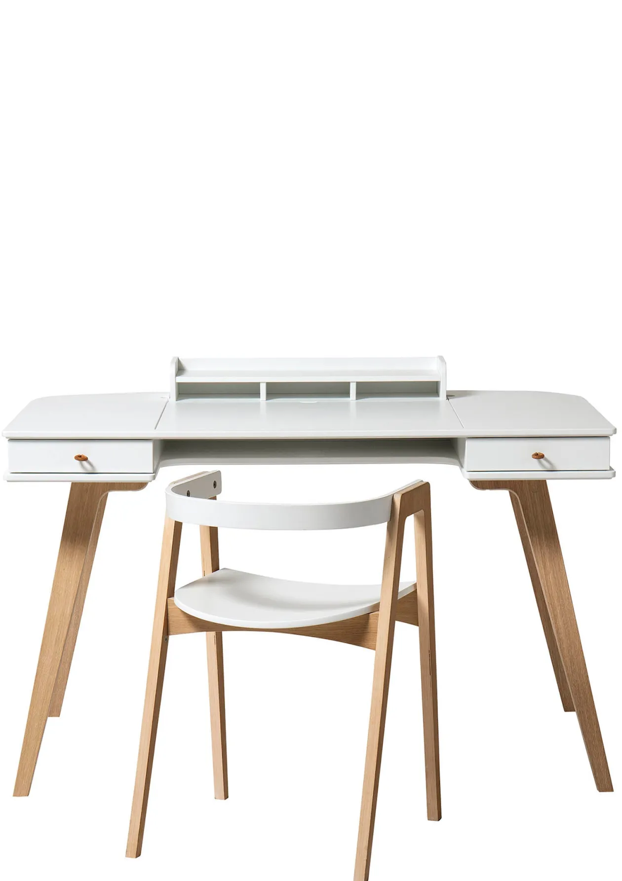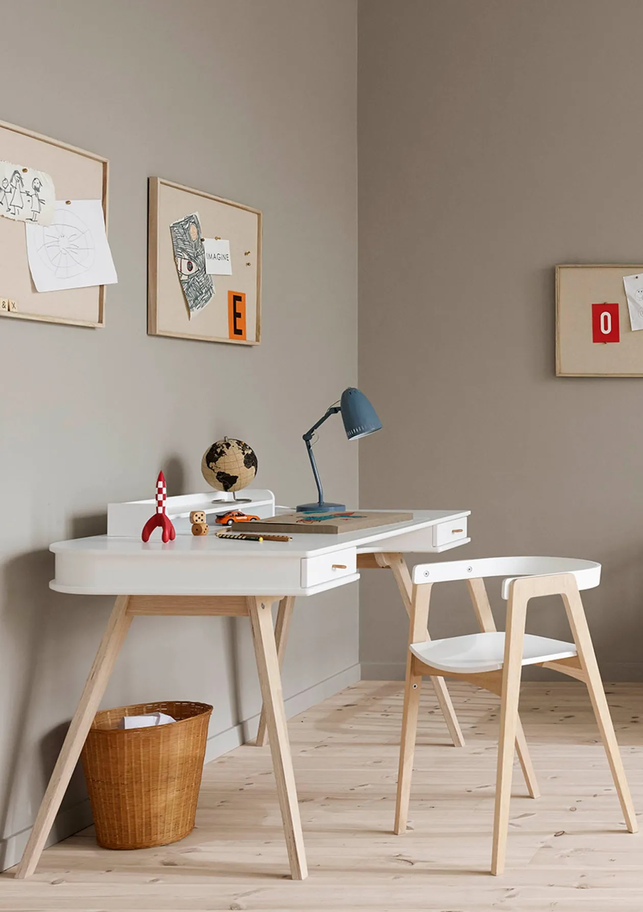 Dieses Set aus Schreibtisch und gemütlichem Armlehnstuhl wurde extra für kleine Kreative entwickelt. Mit zwei Schubladen, Fächern, einem wendbaren Aufsatzregal und einer versteckten Ablage bietet der Schreibtisch viel Stauraum und hilft so automatisch, Ordnung zu halten. Dank des eingebauten Zeichenbretts, das sich in der Höhe verstellen lässt, ist der Schreibtisch für Hausaufgaben genauso geeignet wie für farbenfrohe Kunstwerke. Der Armlehnstuhl ist die perfekte Ergänzung, macht bei Bedarf aber auch in Küche oder Esszimmer eine gute Figur.
