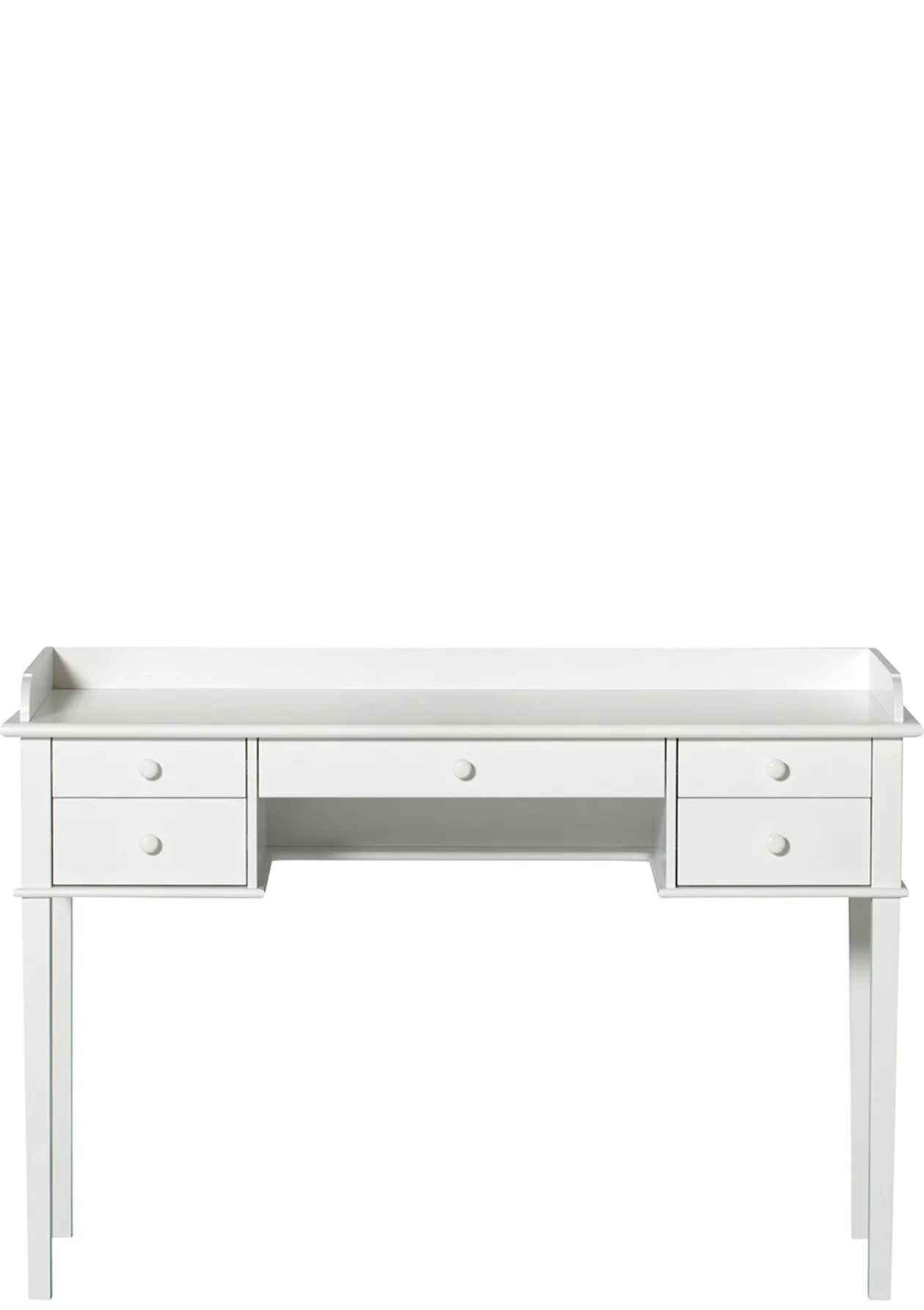 Ein stilechter Klassiker für’s Kinder- und Jugendzimmer! Dieser Schreibtisch wächst dank austauschbarer Beine mit und ist so ein lebenslanger Begleiter. Die fünf Schubladen bieten genug Stauraum für Buntstifte, Tagebücher und alles, was kleine und größere Kreative sonst noch brauchen.