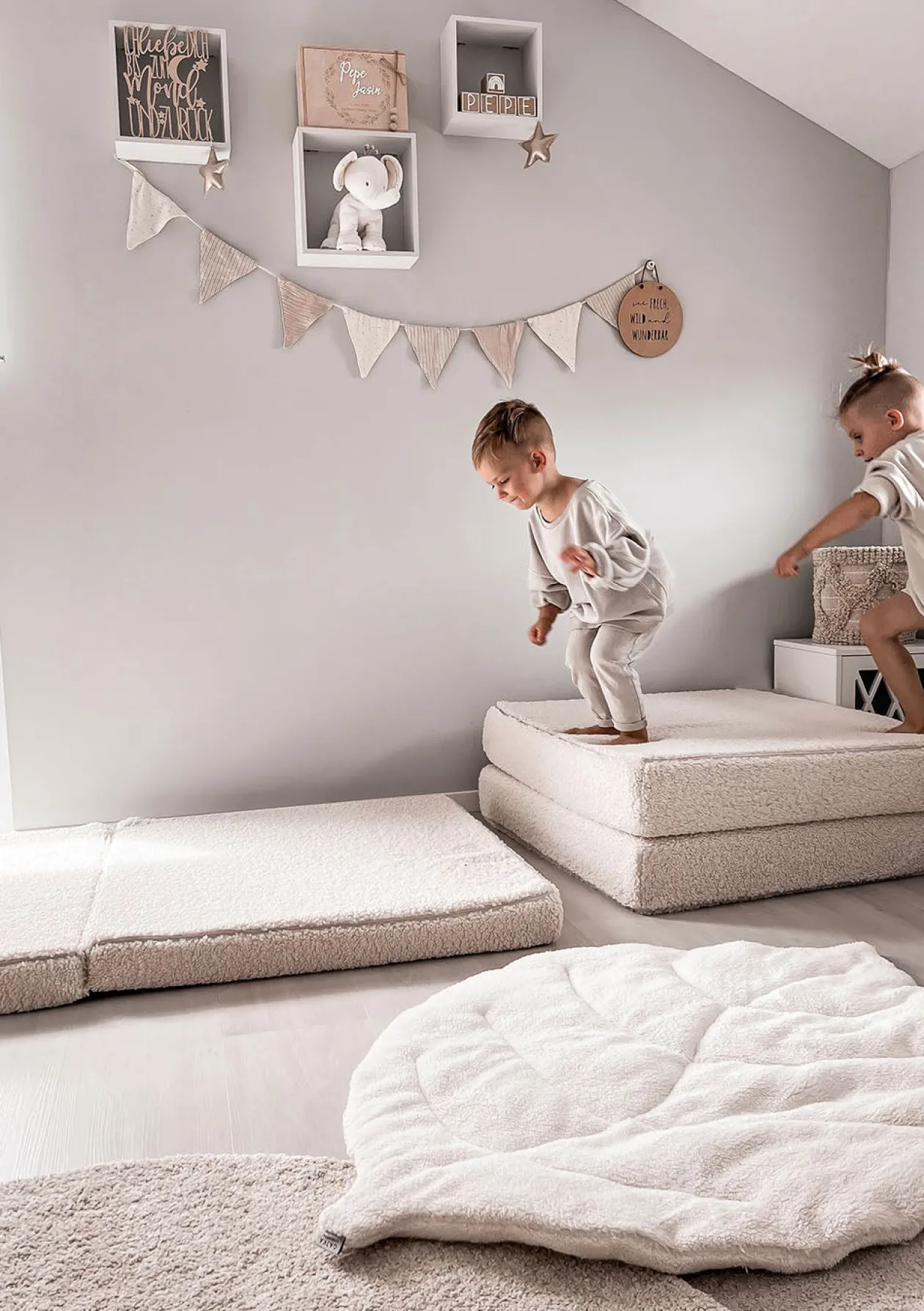 Das FUNZY Spielsofa – ein Wunderwerk für kleine Abenteurer! Dieses einzigartige, modulare Sofa bietet deinen kleinen Entdeckern nicht nur einen gemütlichen Sitzplatz, sondern auch unzählige Möglichkeiten, ihre Kreativität zum Leben zu erwecken.