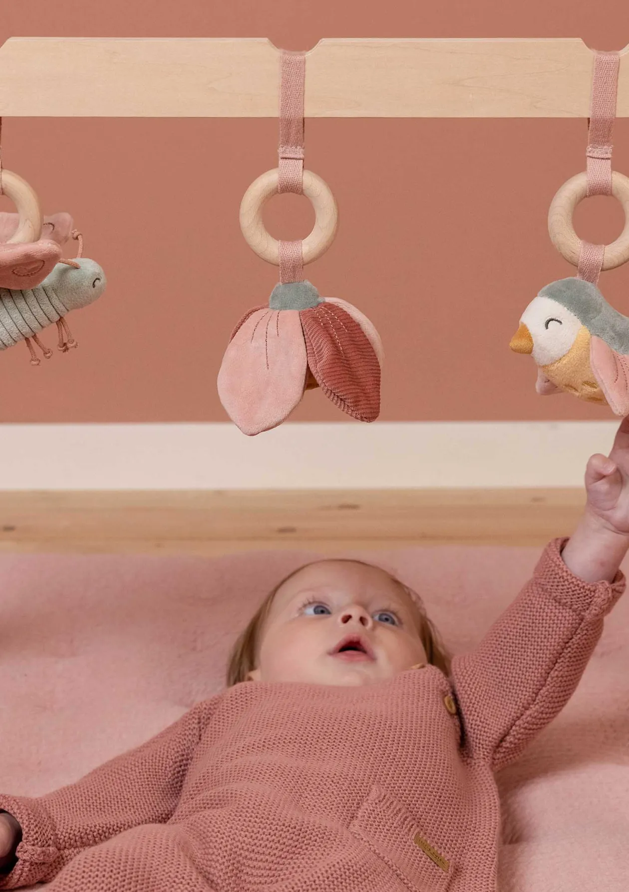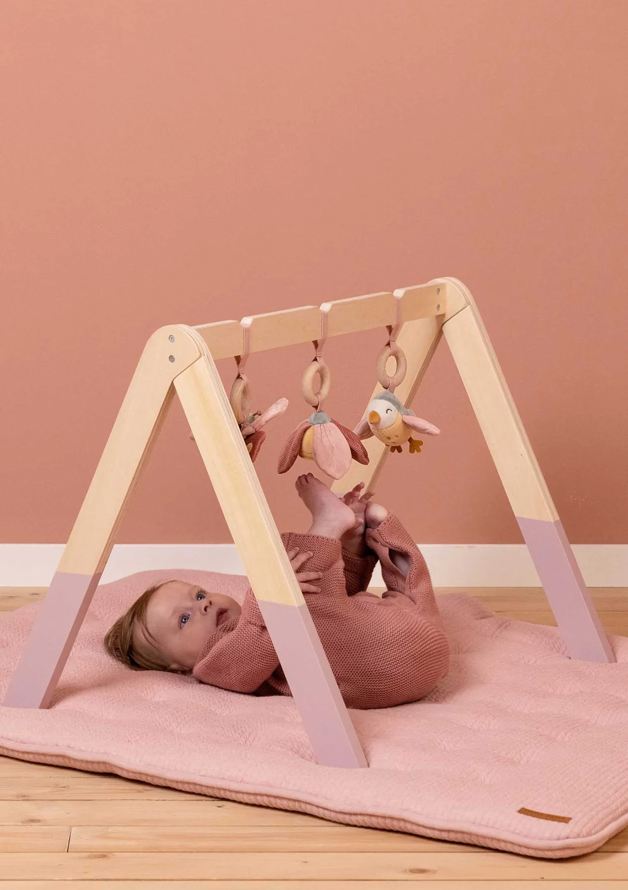 Baby Workout – und das mit Stil! Das wunderschöne Spieltrapez von LITTLE DUTCH animiert dein Baby, sich zu strecken, zu recken und mit den süßen Anhängern zu spielen. Der quietschende Schmetterling, der glückliche kleine Vogel und die bunte Blume wecken Träume von blühenden Blumenwiesen und schenken Mama oder Papa ein paar Minuten für sich.