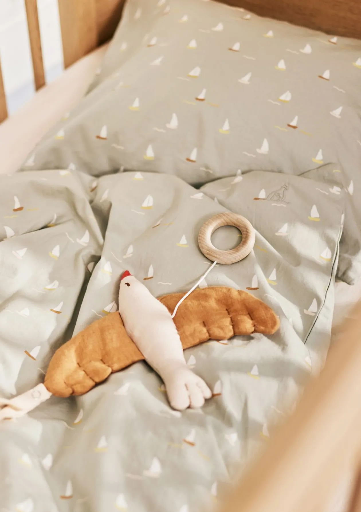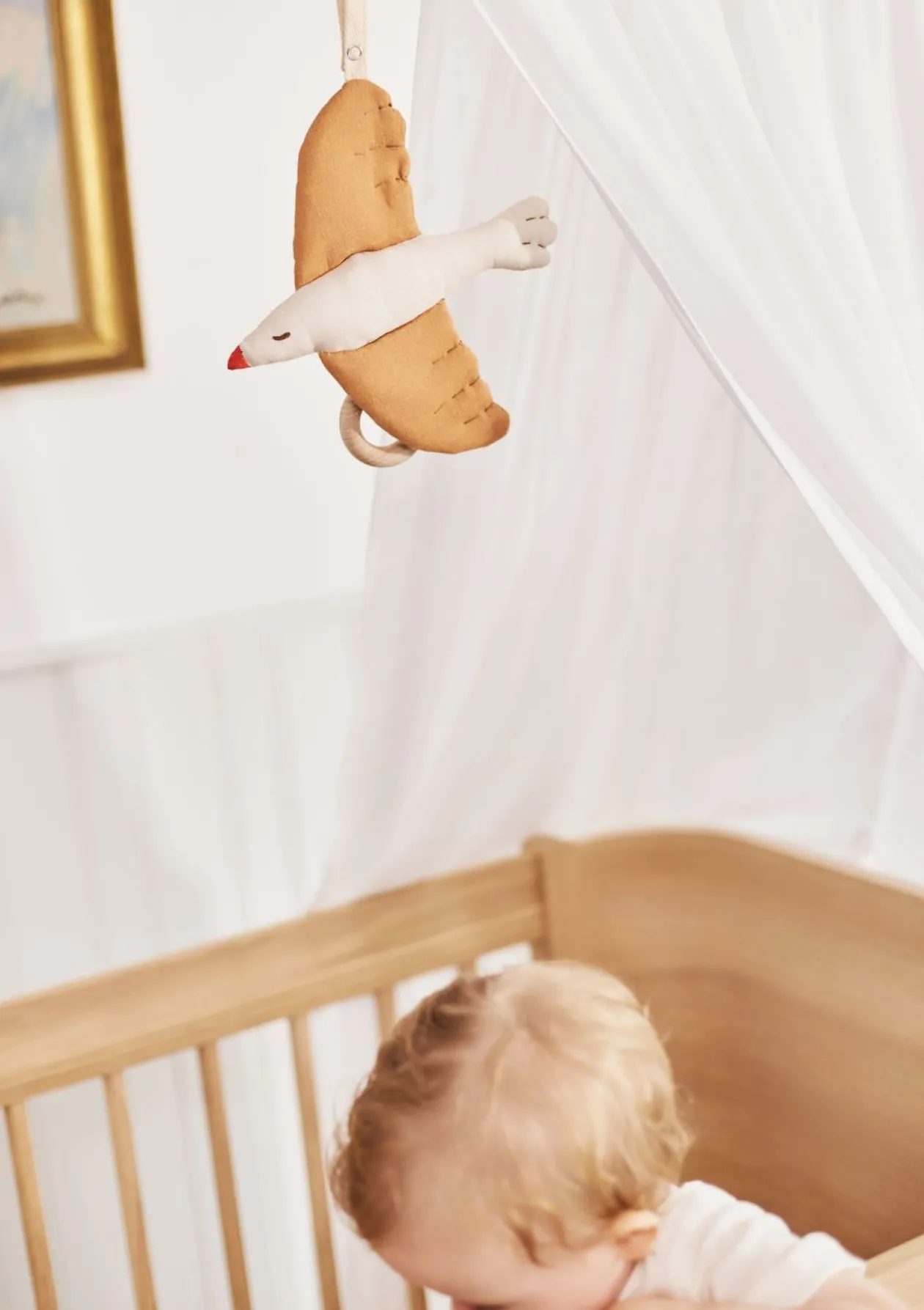 Dieses Produkt ist zum Aufhängen, zum Beispiel über dem Babybett gedacht. Bitte außer Reichweite deines Babys befestigen.