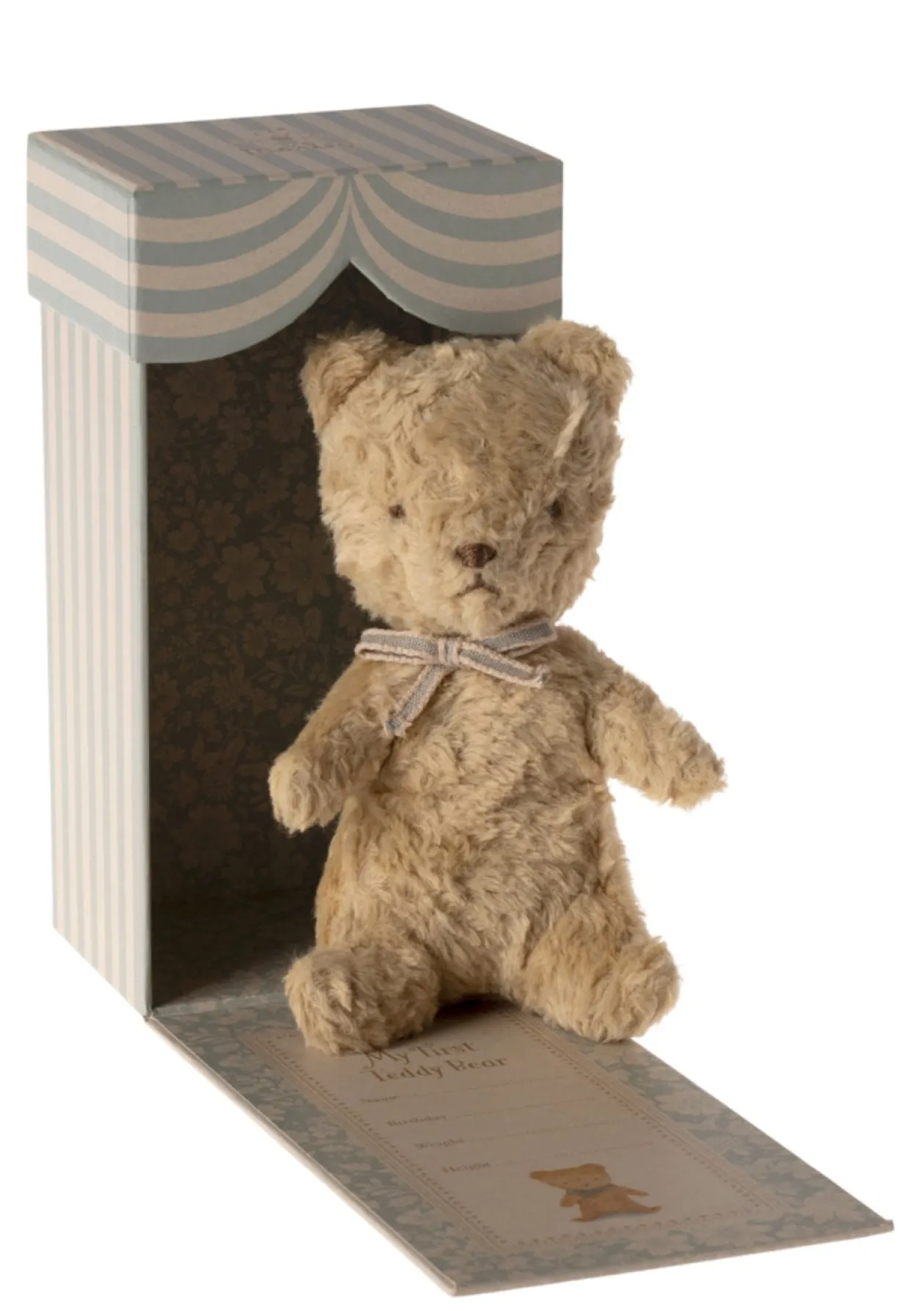 Besonders schön ist auch die Geschenkbox, die das kleine Bärchen mitbringen. Sie bietet Platz zum Eintragen der Geburtsdetails des Kindes: Name, Datum, Größe und Gewicht. Ein wundervolles Geschenk für Neugeborene!
