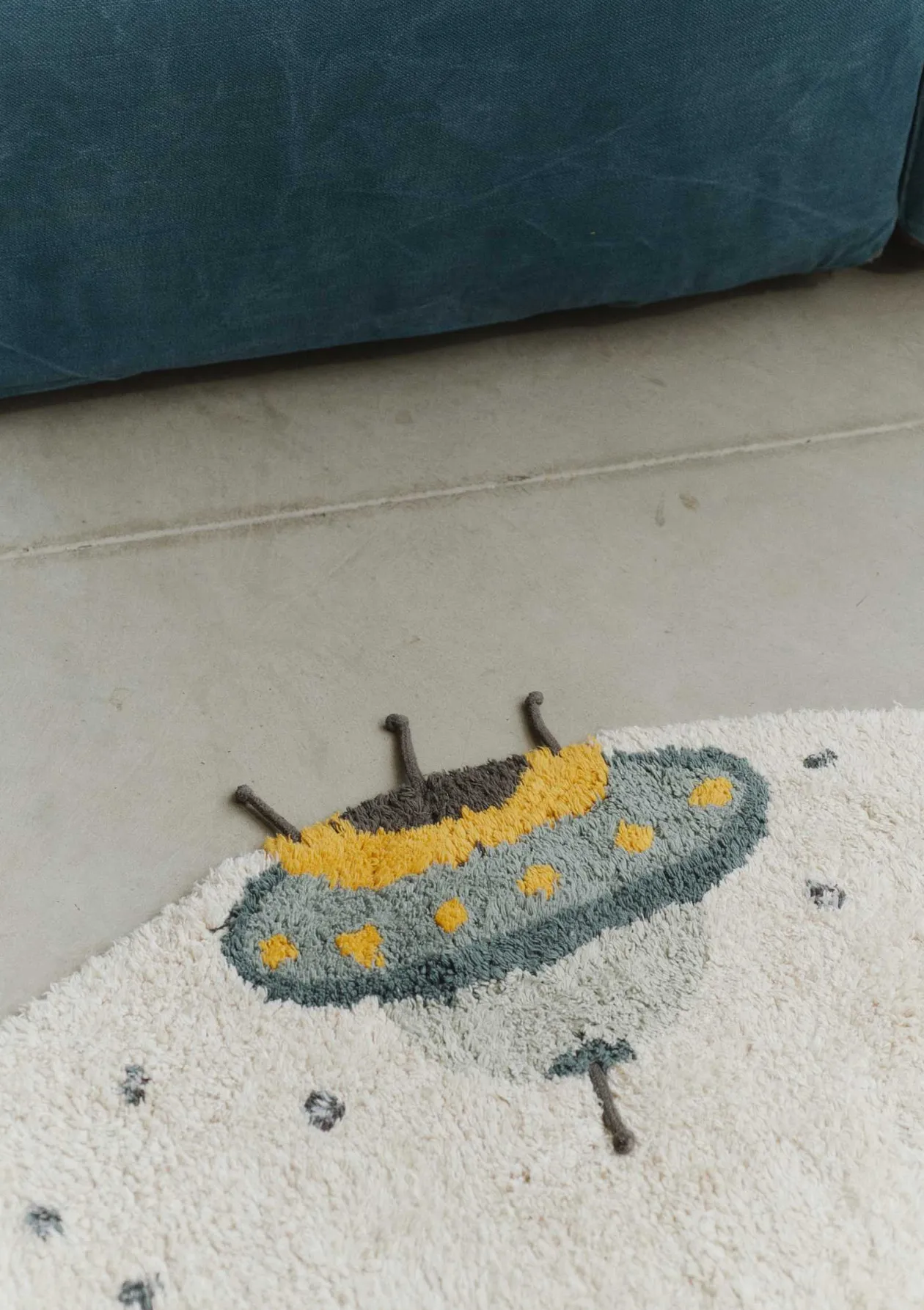 Dieser niedliche Kinderteppich von LORENA CANALS lässt Kinderherzen höher schlagen. Der runde Teppich ist in Handarbeit entstanden, besteht aus natürlichen Baumwollfasern und überrascht mit aufregenden Weltraum-Motiven. Ob Planet, Rakete, UFO oder Sternschnuppe – die liebevoll gestalteten Details schaffen den Blickfang und machen das Modell zu einem ganz besonderem Accessoire im Kinderreich.