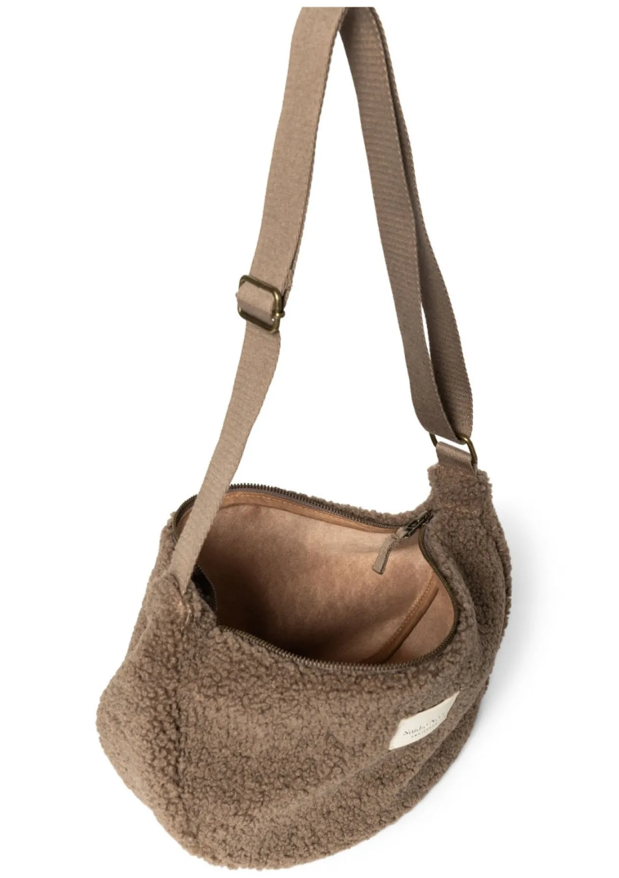 Diese stylische Umhängetasche von STUDIO NOOS ist nicht nur schön, sondern auch praktisch. Sie überrascht mit kuscheligem Obermaterial aus Teddyplüsch und kann unterwegs auch mal als gemütliches Kissen herhalten. Die Tasche ist mit einem Reißverschluss ausgestattet, wodurch im geräumigen Innenfach alles sicher aufbewahrt wird. Gleichzeitig setzt du mit diesem Modell ein modisches Statement!