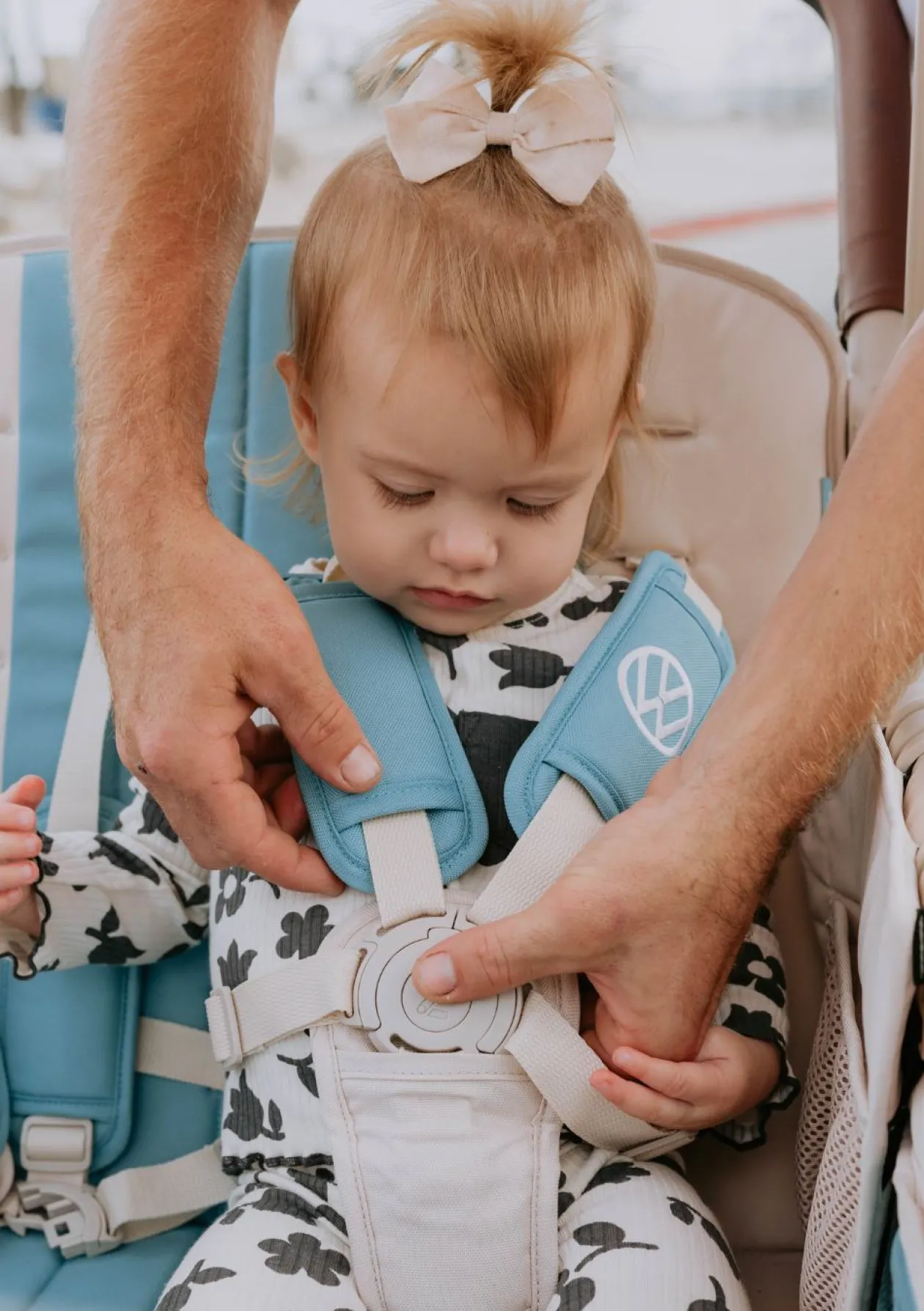 - 5-Punkt-Sicherheitsgurte mit Polstern garantieren bestmöglichen Schutz und zusätzlichen Komfort
